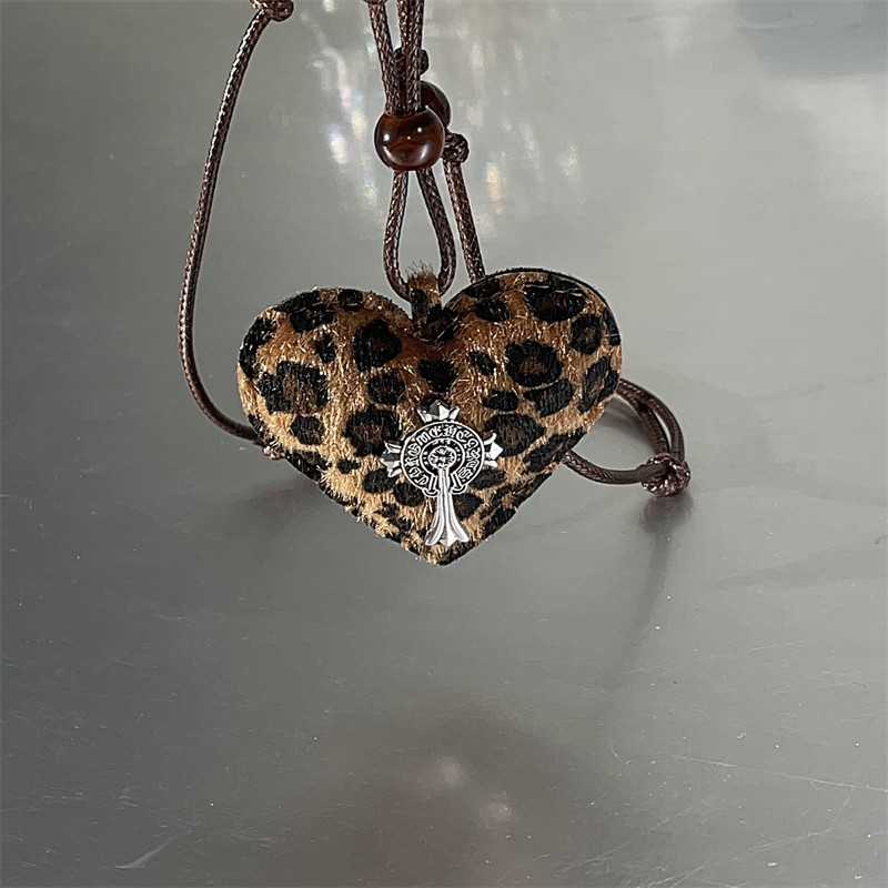 复古辣妹风豹纹爱心十字架吊坠抽拉项链女小众y2k时尚百搭毛衣链