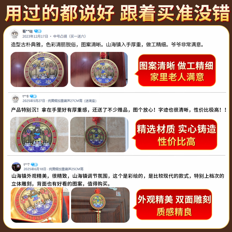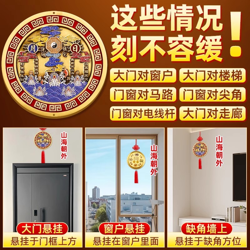 室外山海镇摆件挂件黄铜八卦镜凸镜大门家用入户乔迁客厅全铜窗户