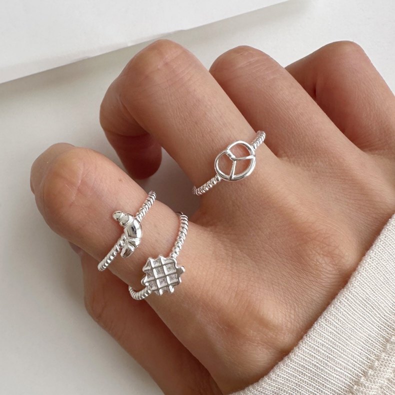 牛角包甜甜圈面包系列s925纯银戒指女小众设计尺寸可调节食指指环