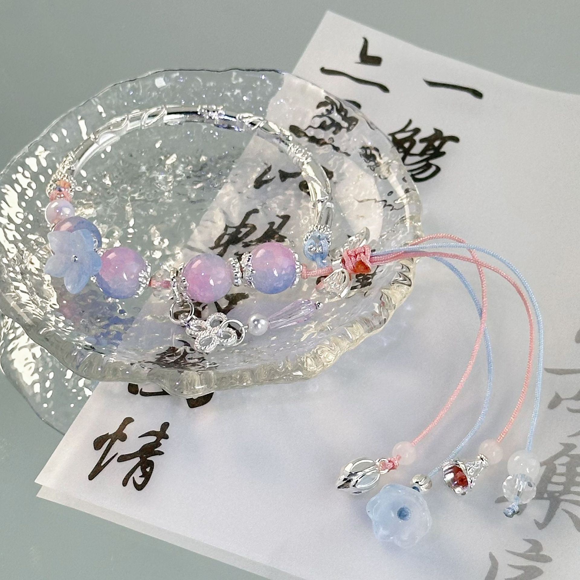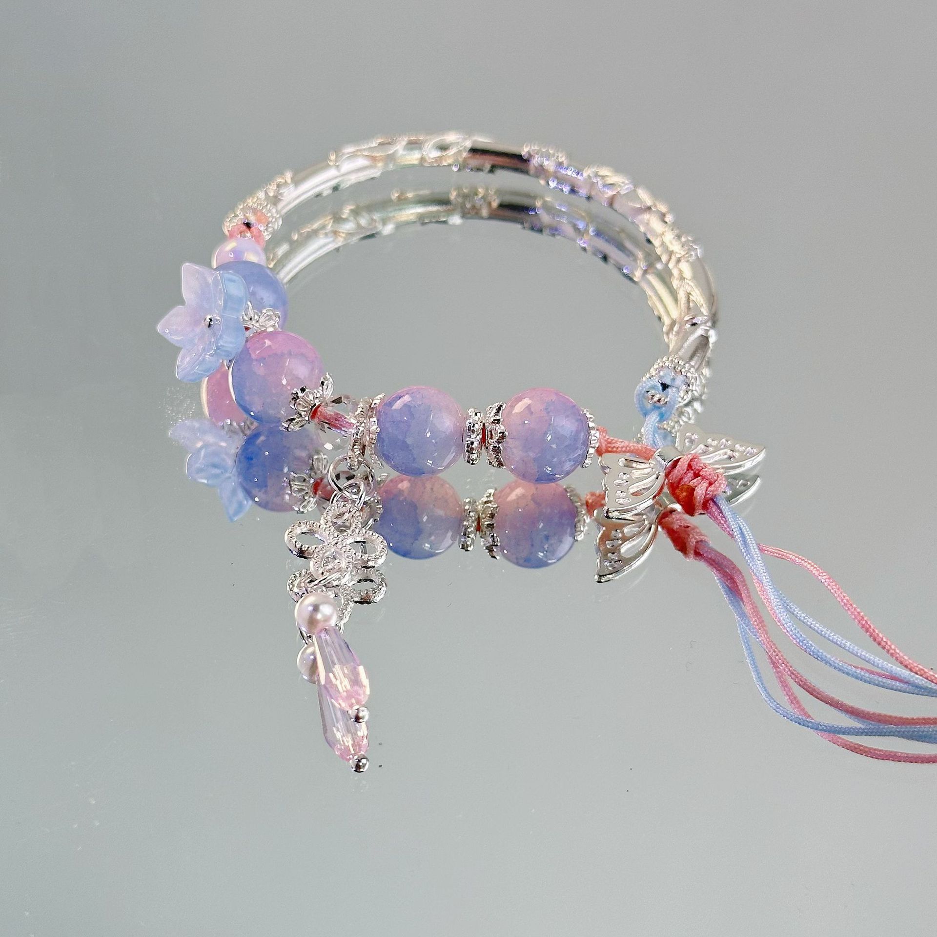 擒钱 花朵蝴蝶紫色串珠编织可调节手链女小众设计古风高级感手镯