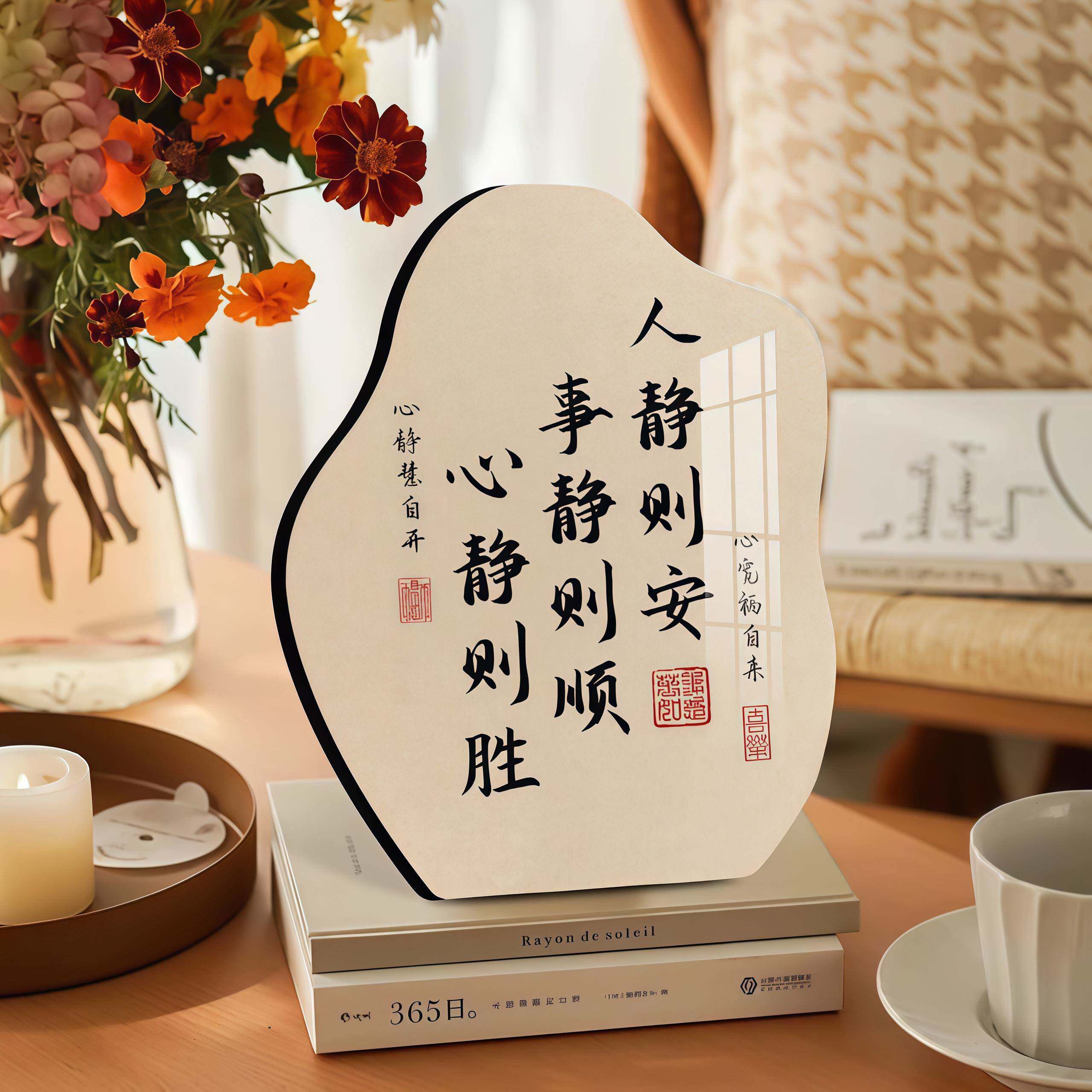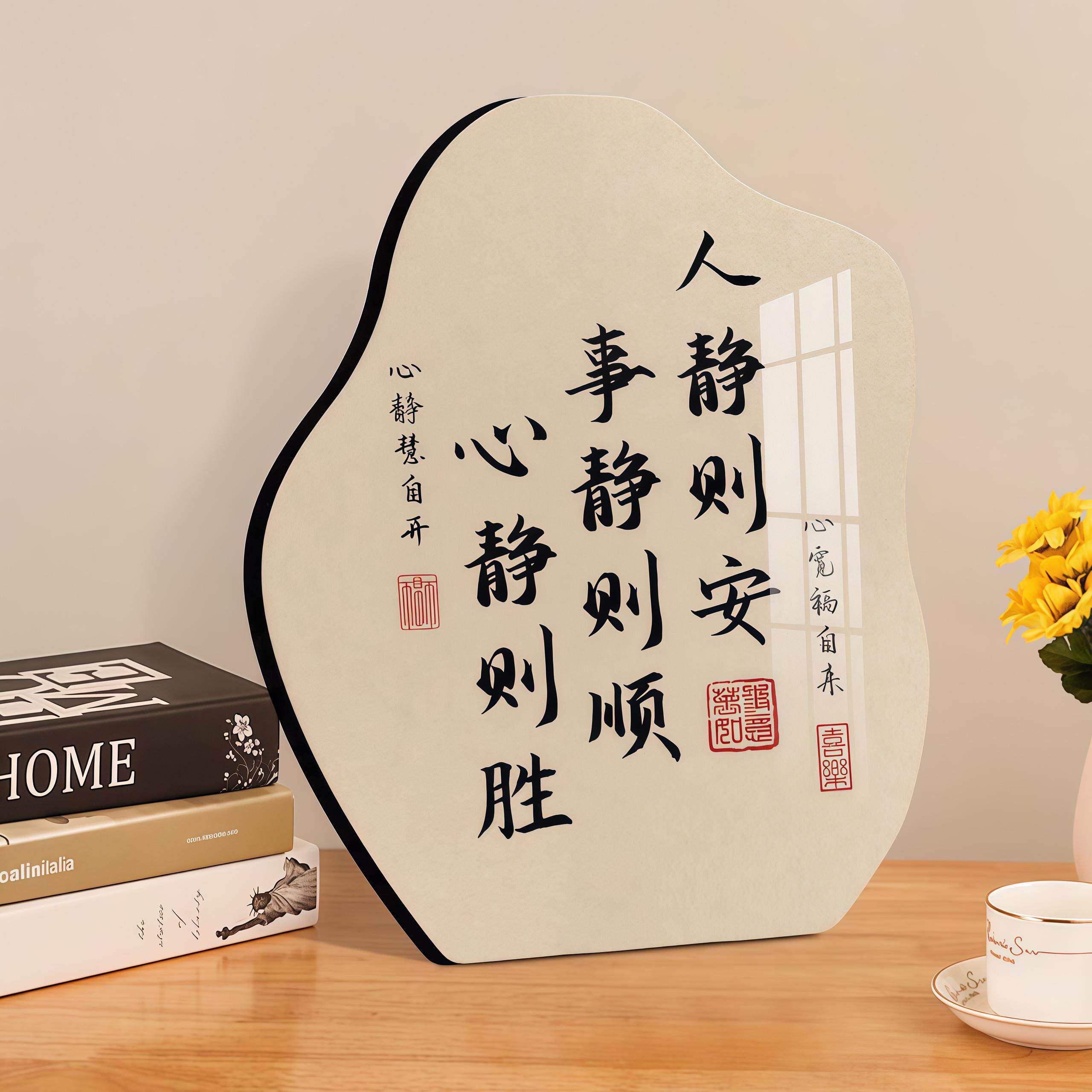 人静则安事静则顺中式书法字画不急静心桌面相框摆件书房装饰挂画