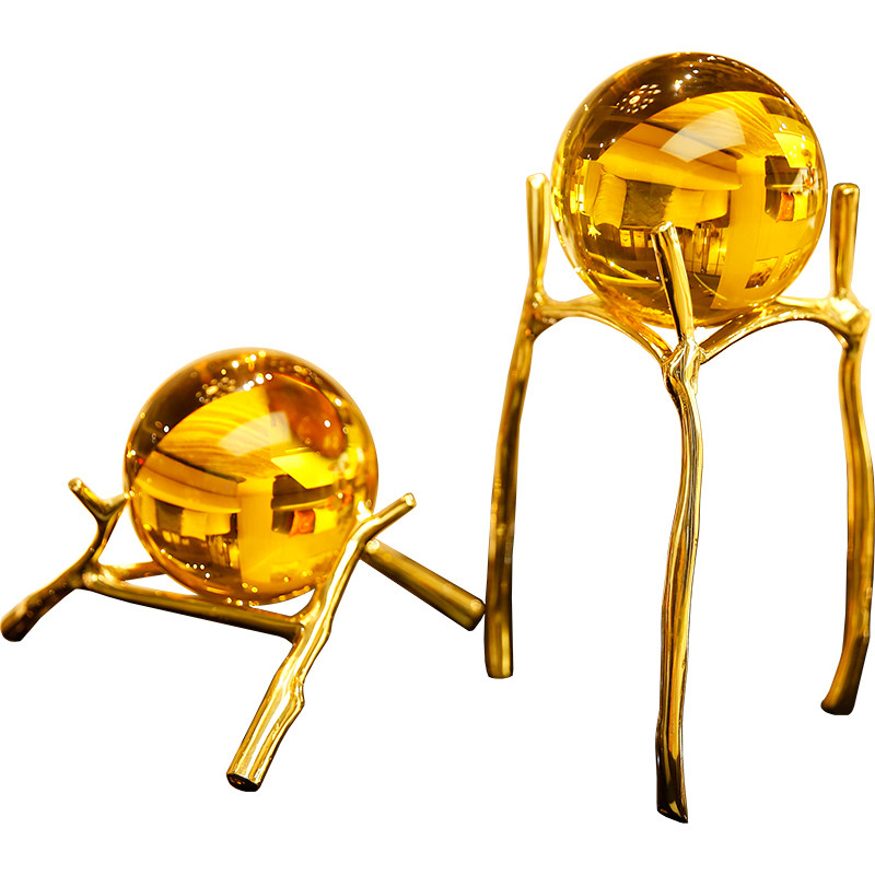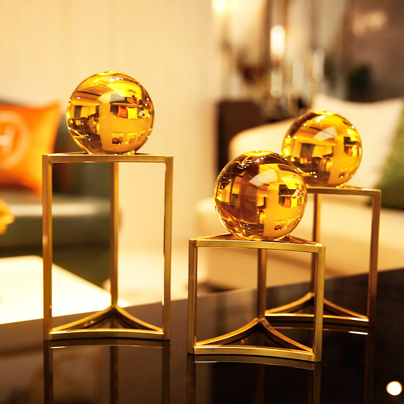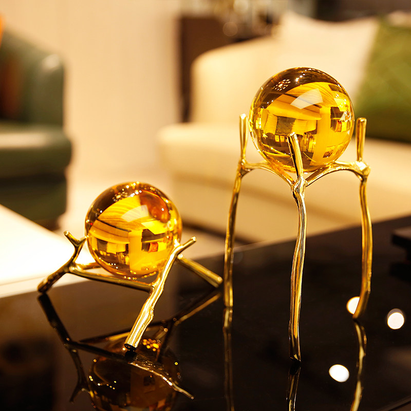 轻奢招财黄色水晶球摆件家居客厅电视柜酒柜书房办公室桌面装饰品