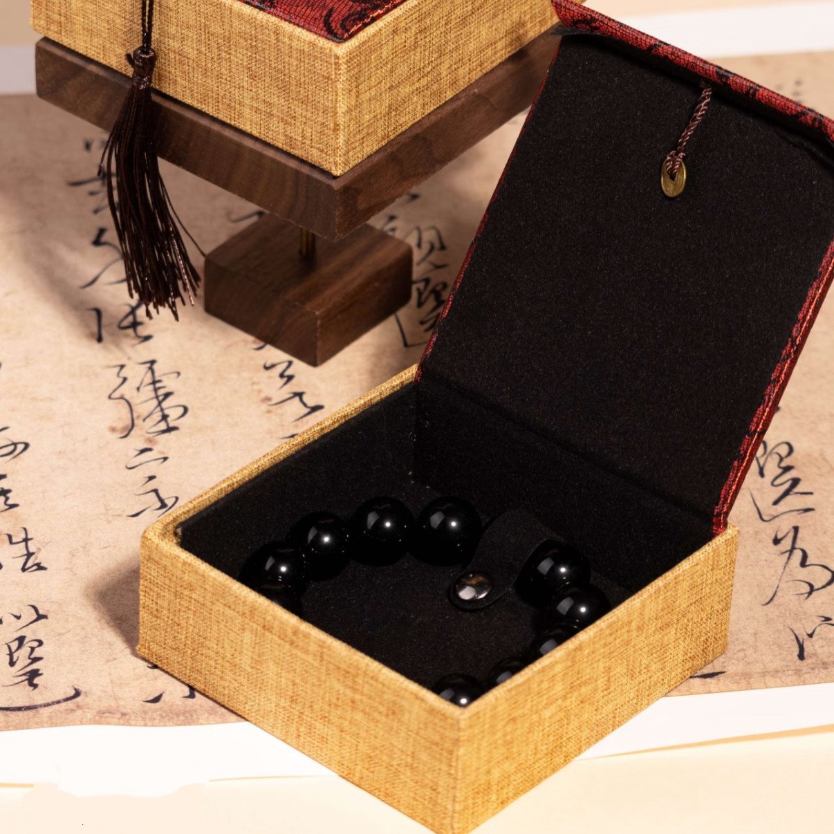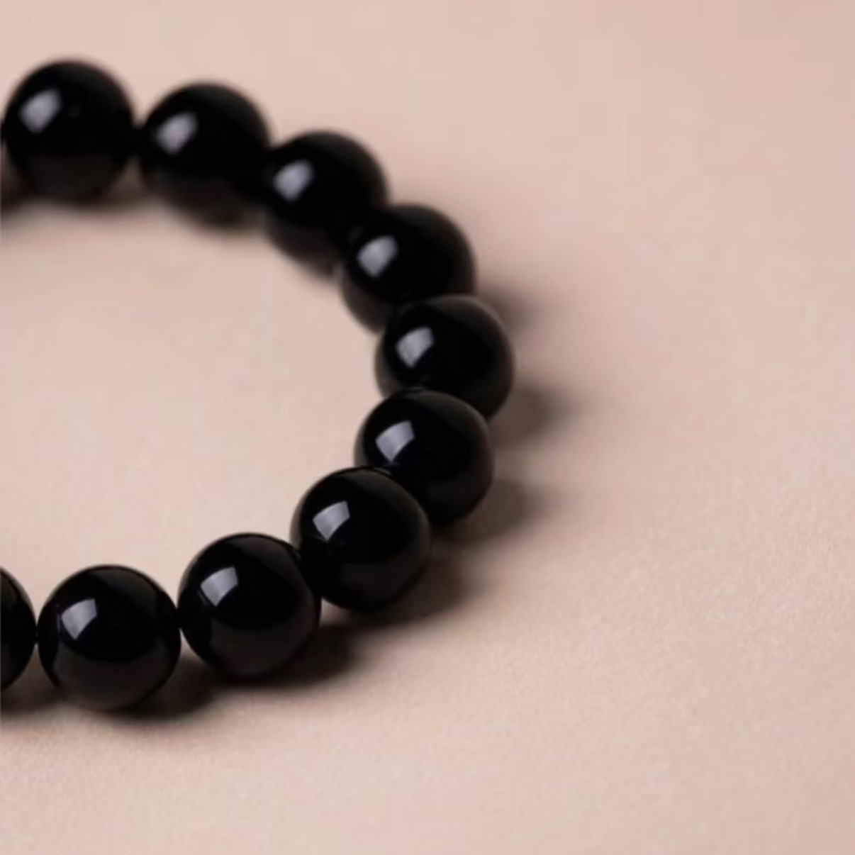 天然乌金黑曜石手链天然黑耀石黑色珠子串珠散珠单圈手串男女款