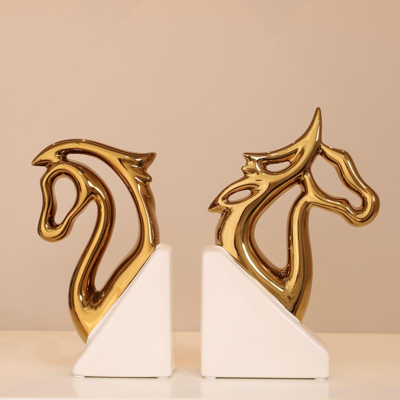 轻奢高档马头书挡创意摆件客厅书柜办公桌面书立仿真书家居装饰品