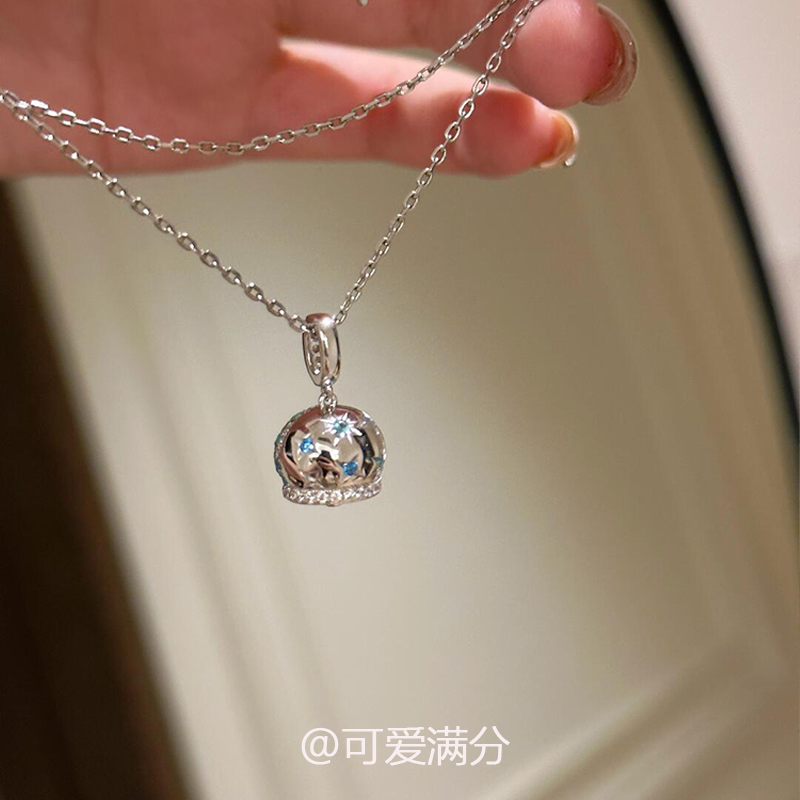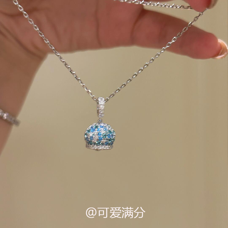 蓝色双面铃铛项链女高颜值时尚百搭锁骨链轻奢小众设计高级感吊坠