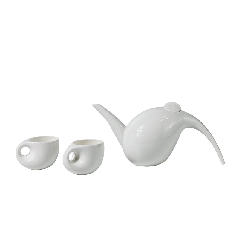 现代极简白色陶瓷歪嘴茶具茶杯酒店会所茶几饰品样板间售楼处摆件