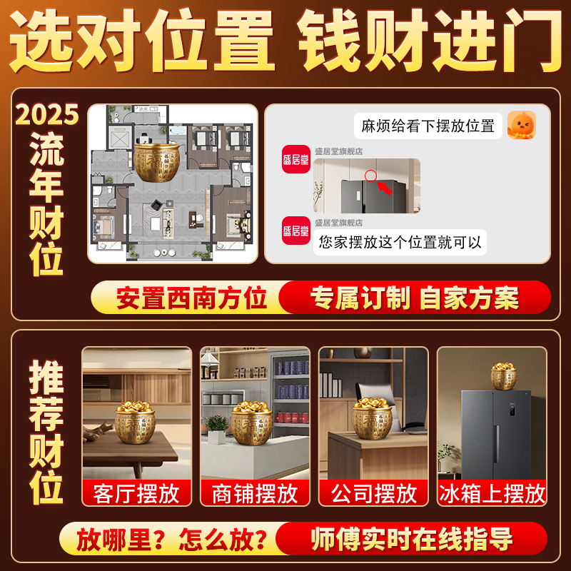 铜百福缸铜家用存钱罐室内客厅展示柜玄关米缸聚宝盆礼品摆件