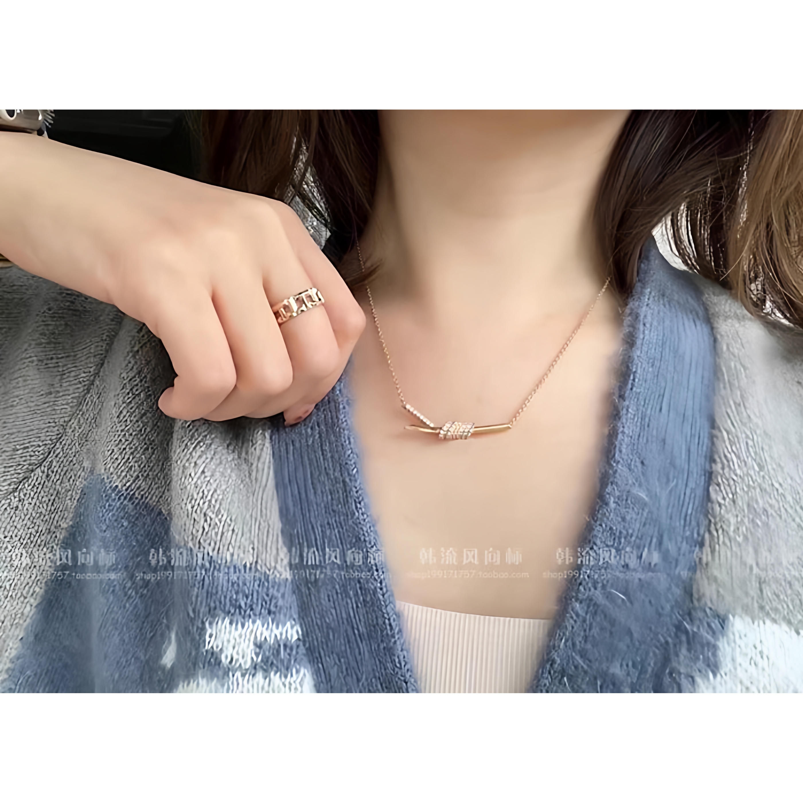 结缘缠绕蝴蝶纽绳结项链锁骨链女玫瑰金双拼色镶钻高级感时尚气质