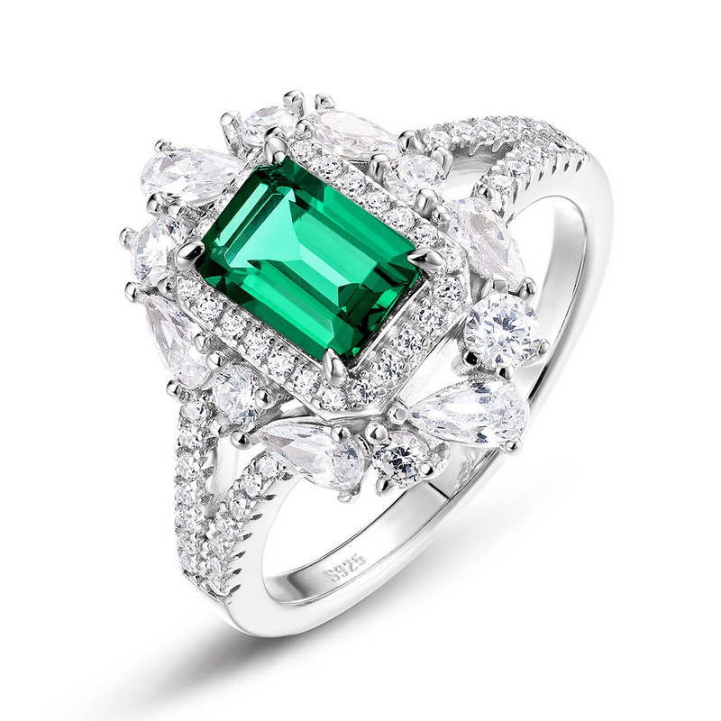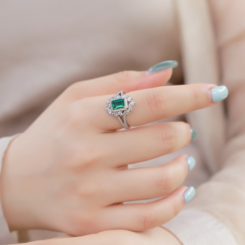 新品培育祖母绿戒指S925银镀18K金PT950铂金水滴镶培育彩宝食指戒