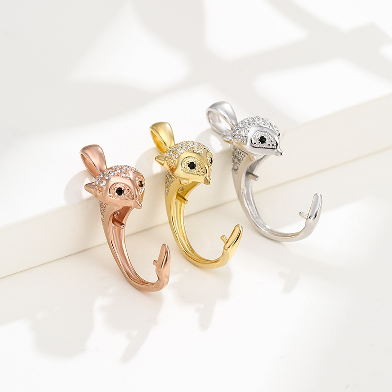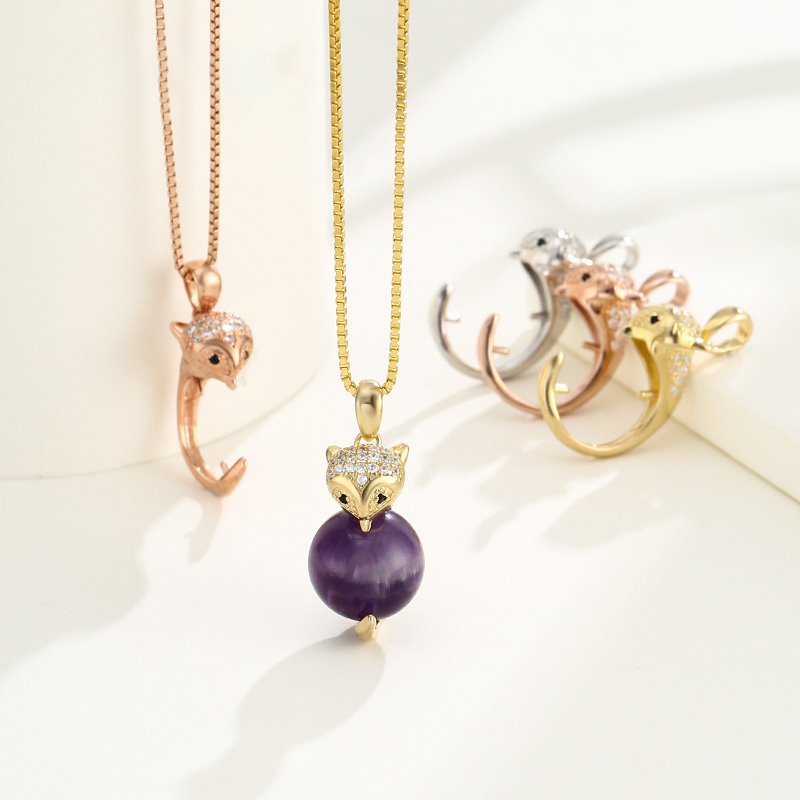 狐狸珍珠配件diy吊坠扣头18K金吊坠翡翠圆珠水晶玉路路通项链夹扣