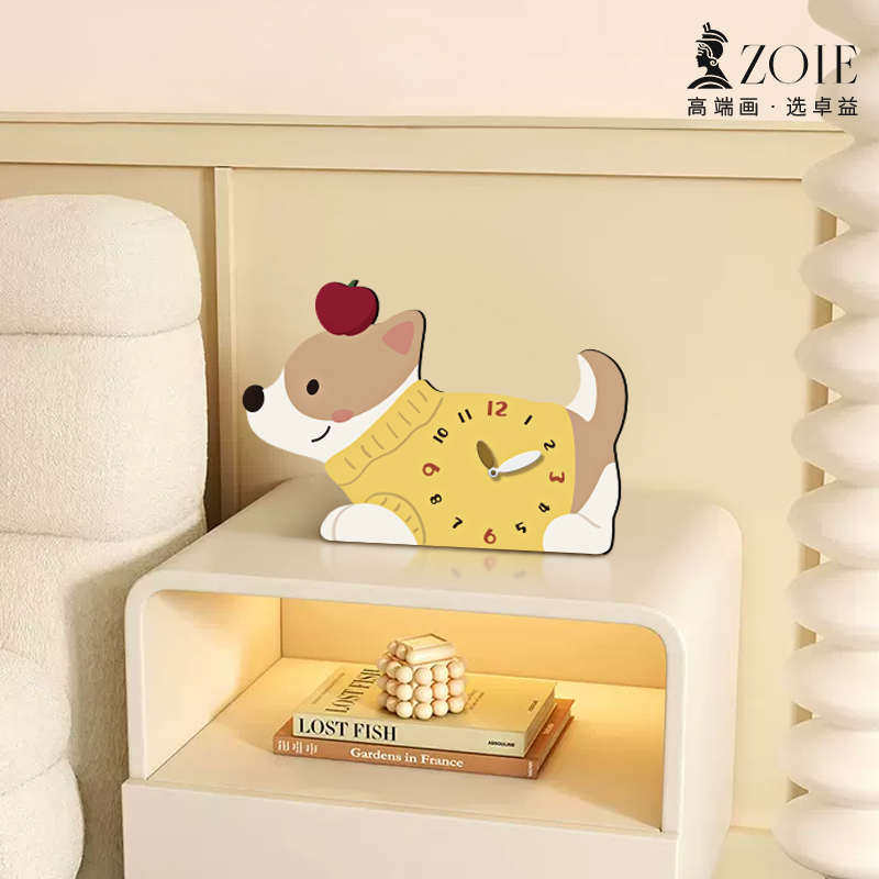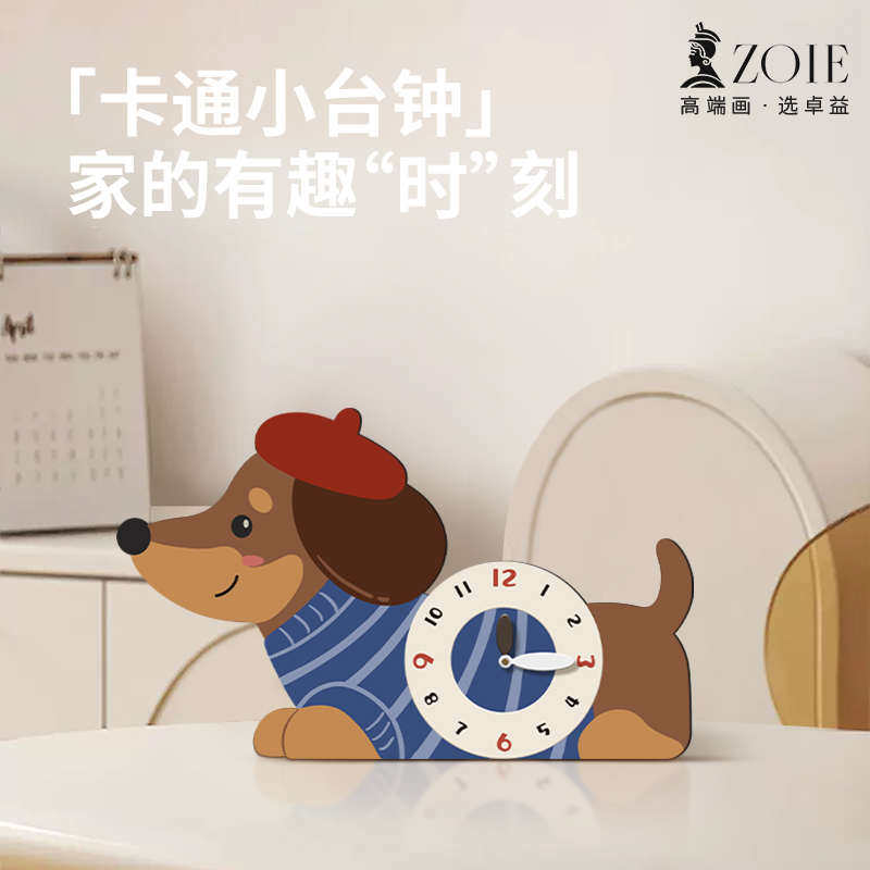 卡通腊肠小狗玄关桌面台钟装饰时钟摆件可爱钟表摆放式家居装饰品