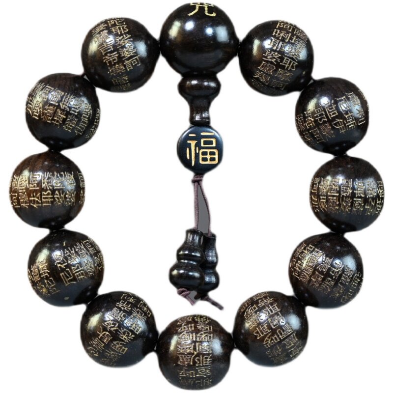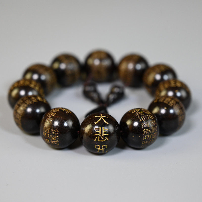 黑檀木手链男女款手串刻大悲咒心经木质佛珠手捻文玩紫光檀当位珠