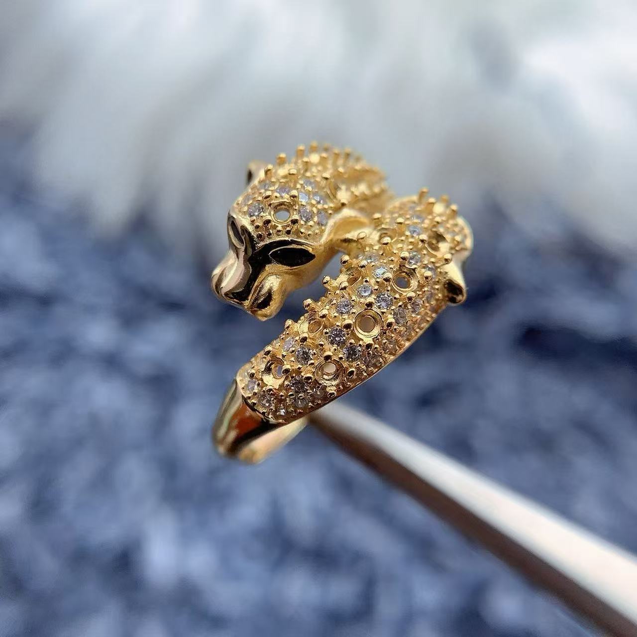 s925纯银戒指空托圆形2*2mm19粒满钻锆石豹子头开口夸张设计手饰