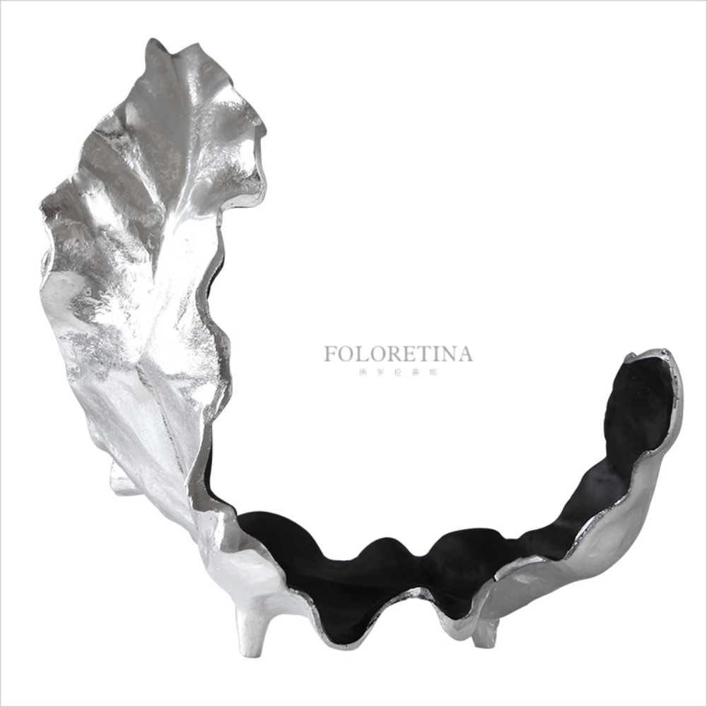 欧式简约复古铝合金叶子创意摆件样板间客厅茶几金属树叶装饰品