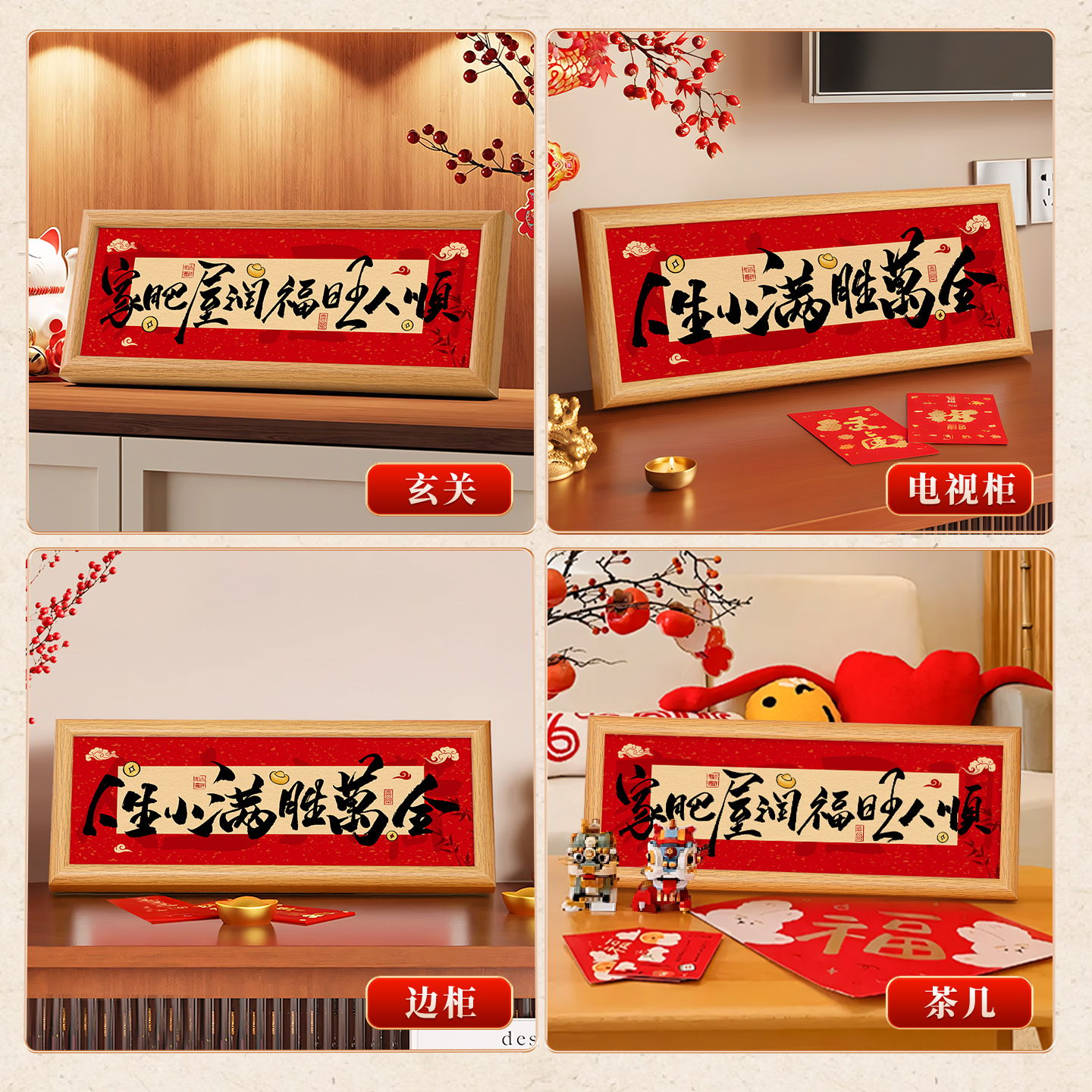 人生小满胜万全国风相框喜庆装饰摆件客厅茶几装饰画书法字画摆台