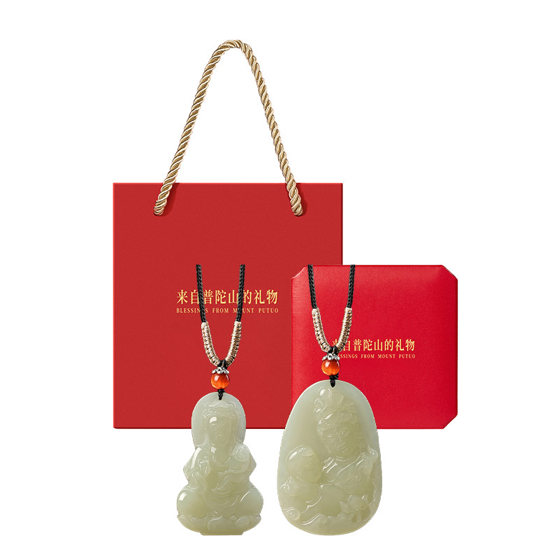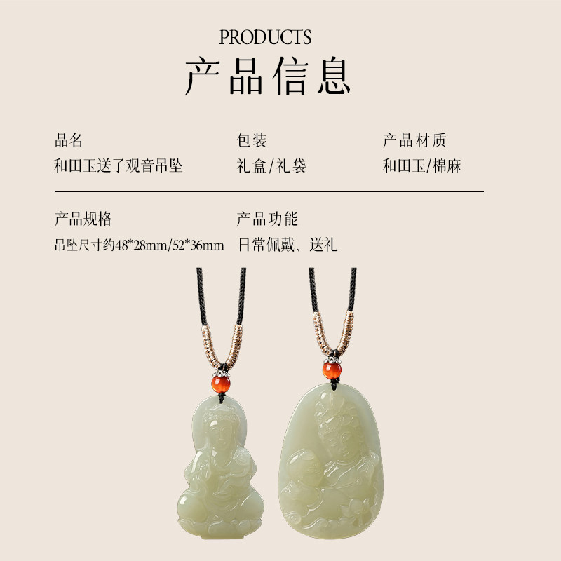 普陀山天然和田玉送子观音手抱童子吊坠添丁添福挂件男女好运玉佩