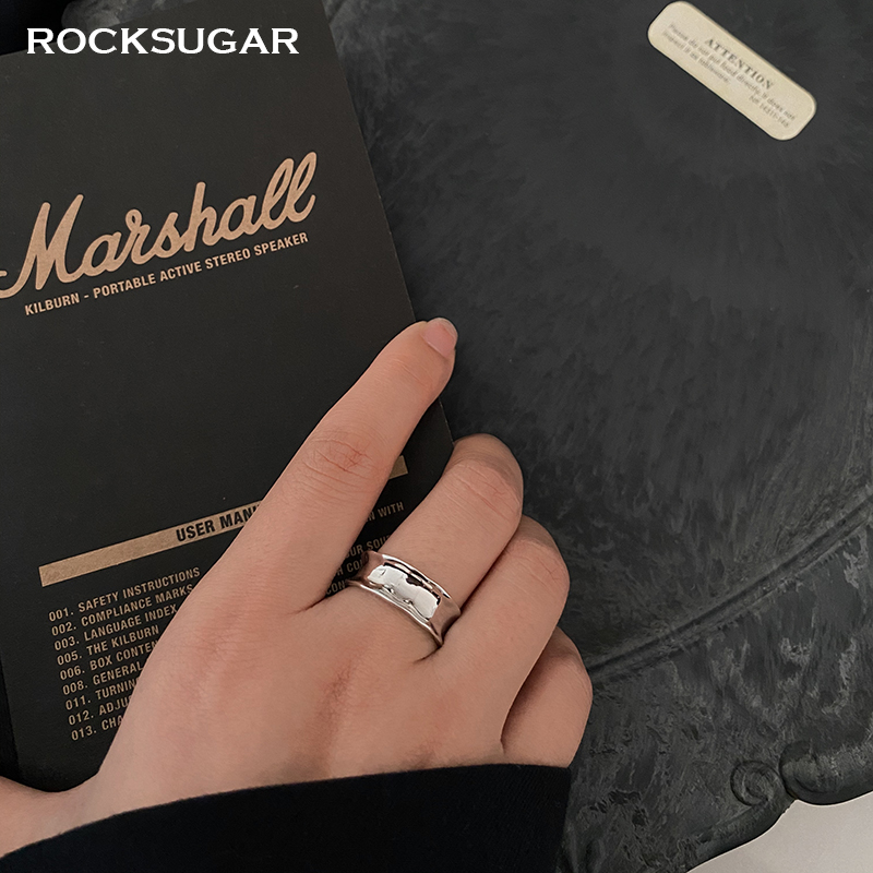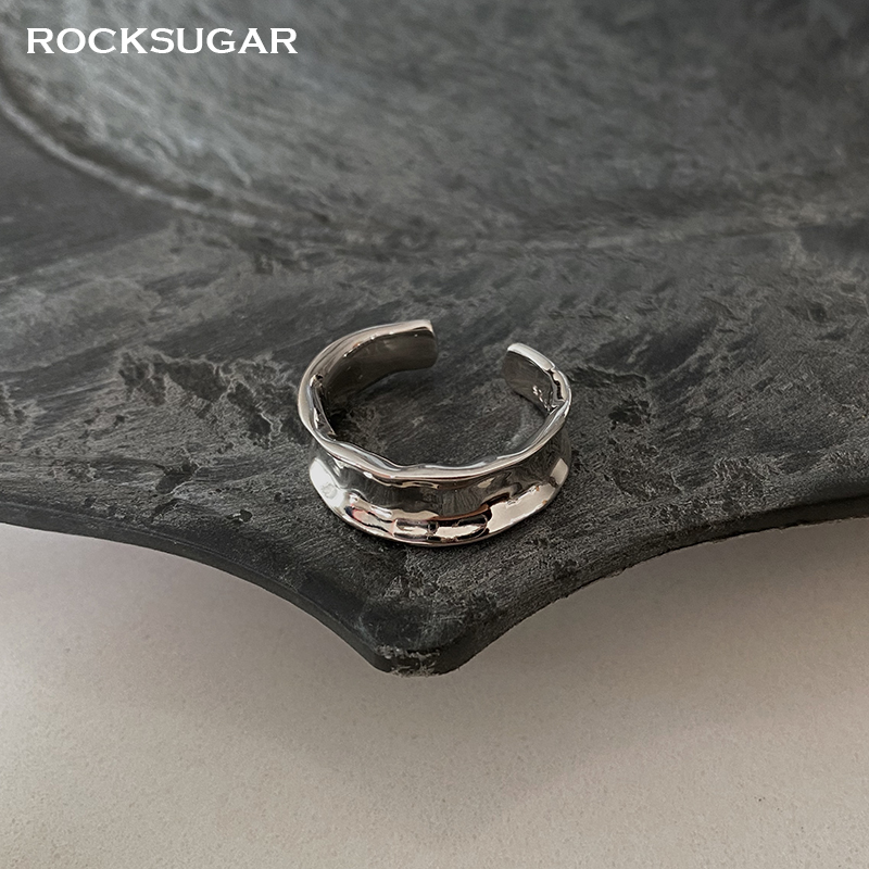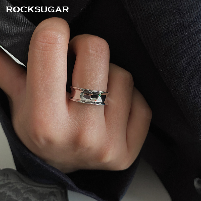 ROCKSUGAR小众极简光面925纯银凹面纹理冷淡风食指开口戒指环男女