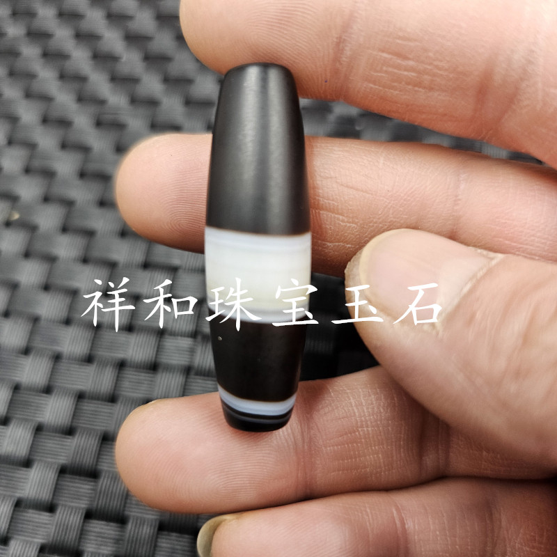 黑白缠丝玛瑙路路通玉石挂件玛瑙勒子路路通手链项链饰品配件吊坠