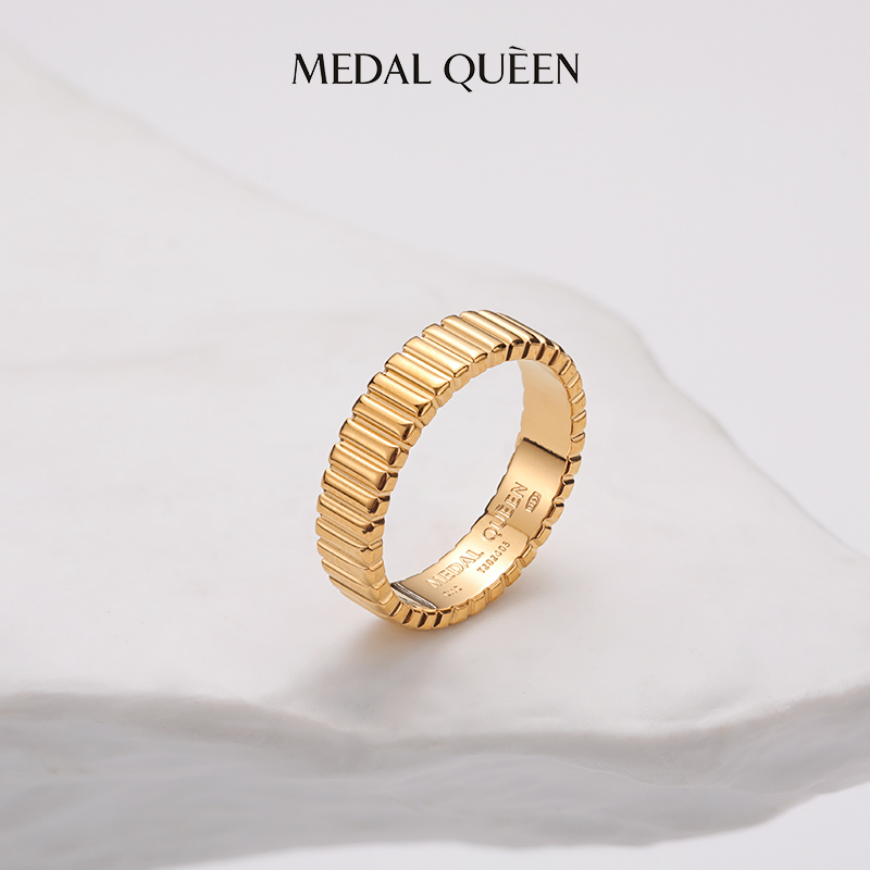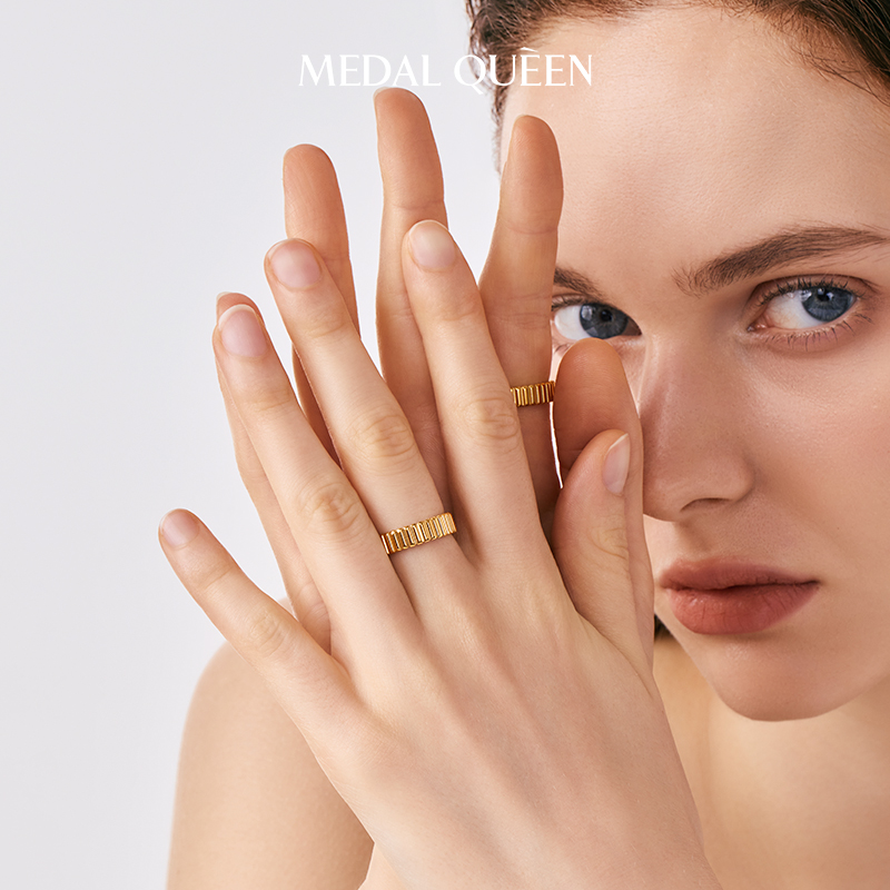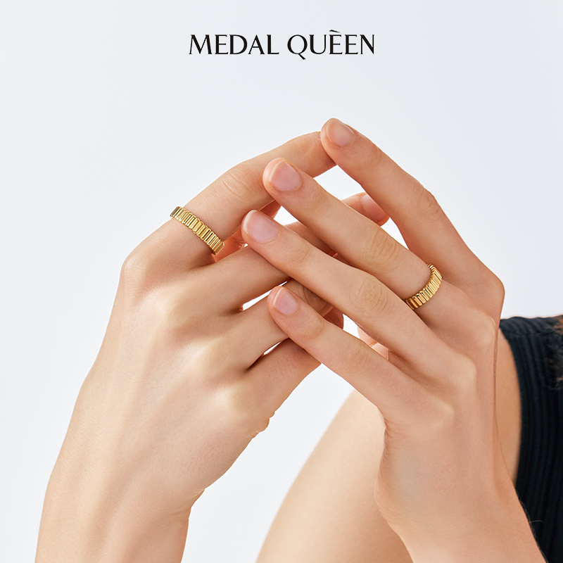 罗缎直纹素圈齿轮戒指女小众设计钛钢螺纹缎纹叠戴指环光泽条纹