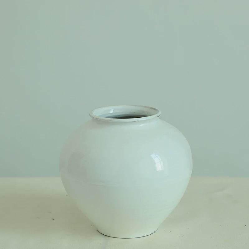 陶瓷花瓶复古新中式白色月亮罐圆肚摆件花艺插禅意民宿装饰花器