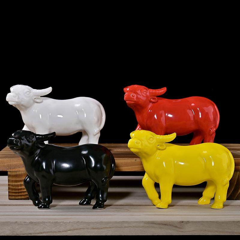 黄色十二生肖陶瓷牛摆件招财风水镇宅玄关客厅办公室柜台乔迁摆设