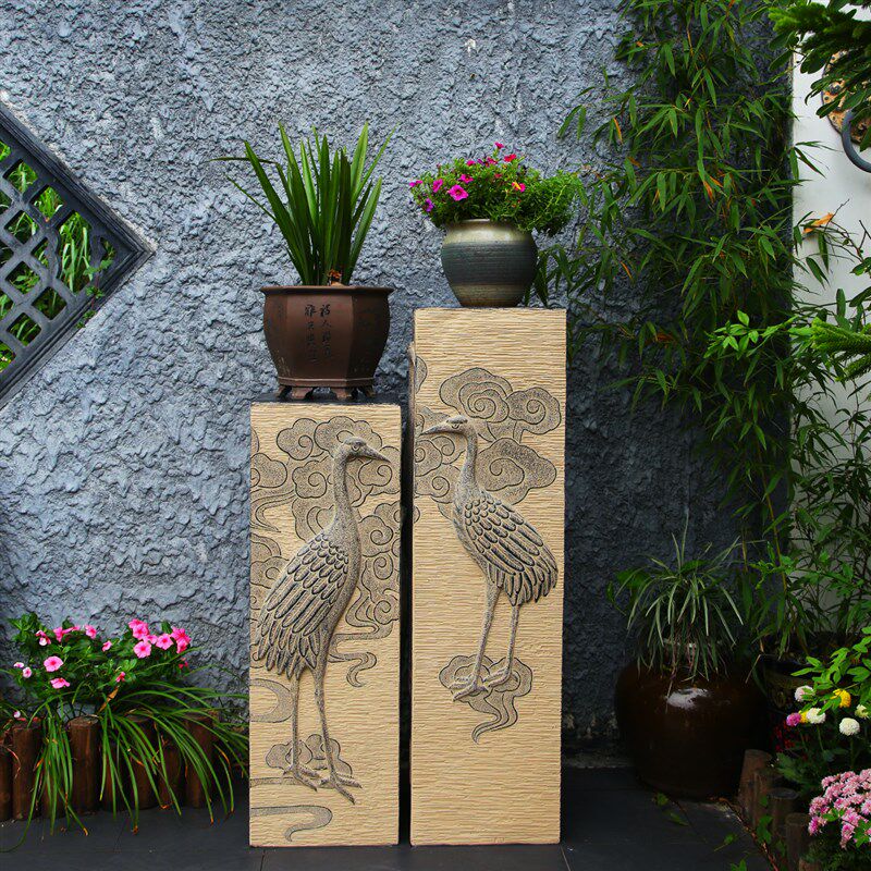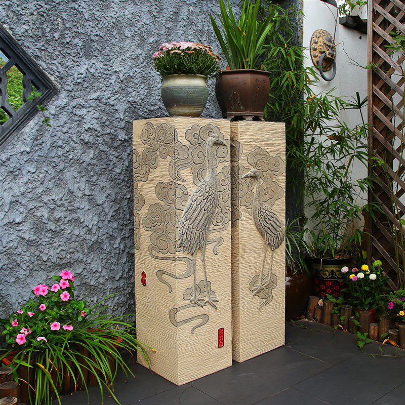 新中式庭院装饰落地摆件酒店大厅玄关仿石展示柱阳台花园盆景底座