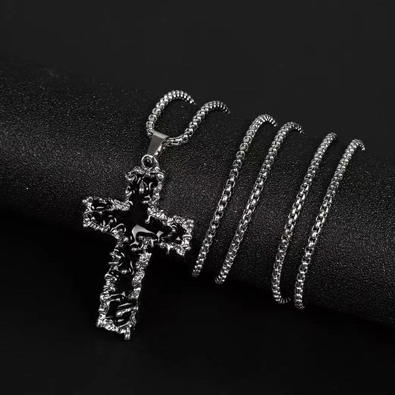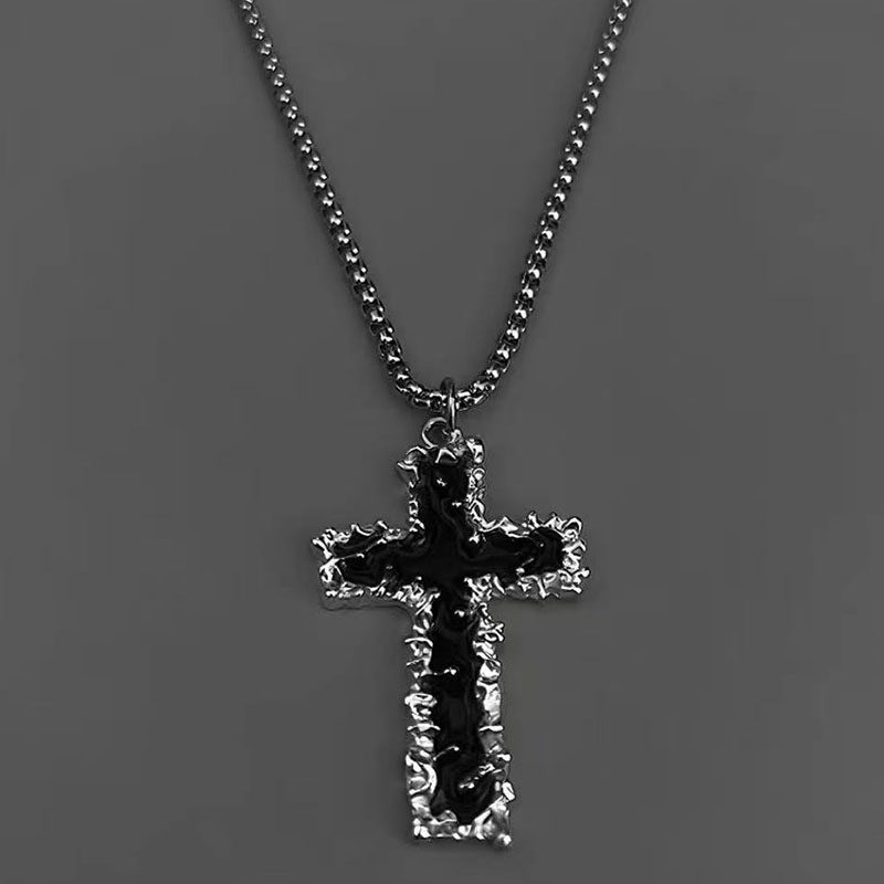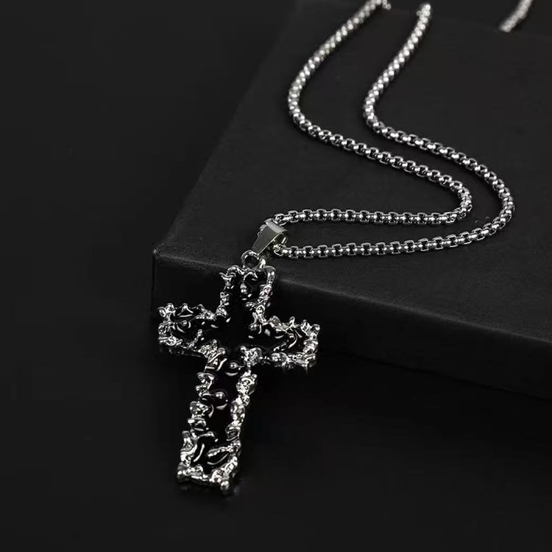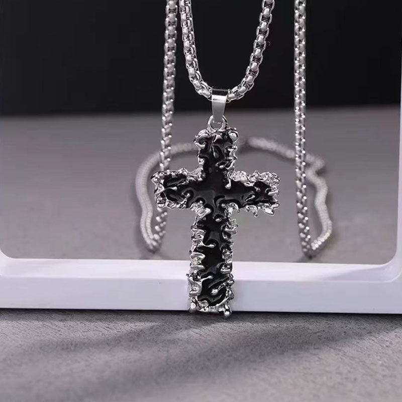 ins小众荆棘十字架钛钢项链男黑色高级感古巴链街头朋克情侣配饰