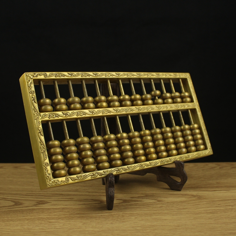 仿古纯黄铜一本万利民国三年雕花算盘招财旺财家居办公室风水摆件