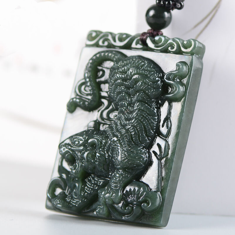 天然正品新疆和田玉青玉下山虎玉吊坠男女款老虎生肖玉坠挂件项链
