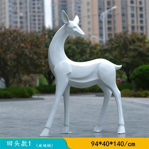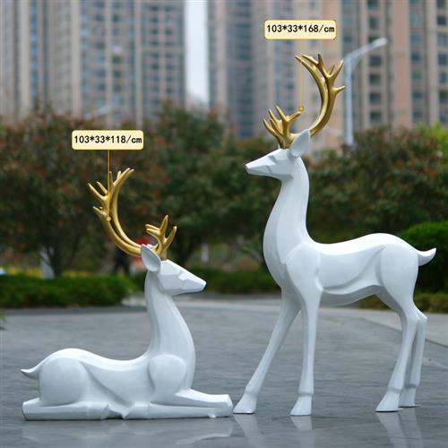 简约现代白色梅花鹿玻璃钢雕塑户外公园林景观房地产小区装饰摆件