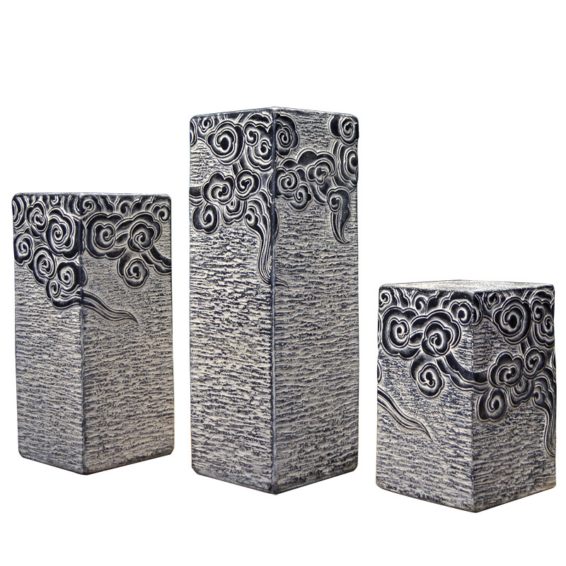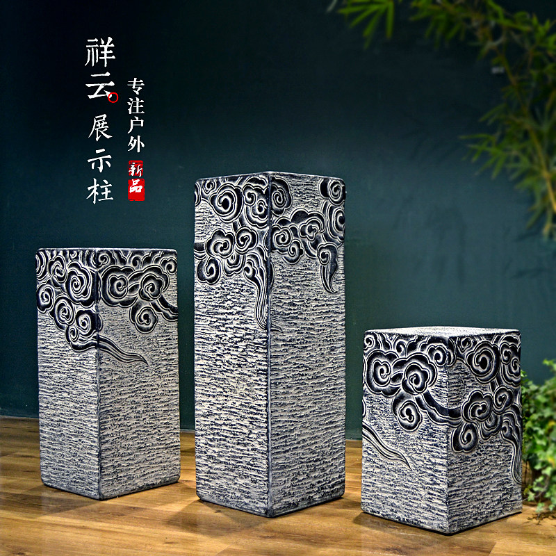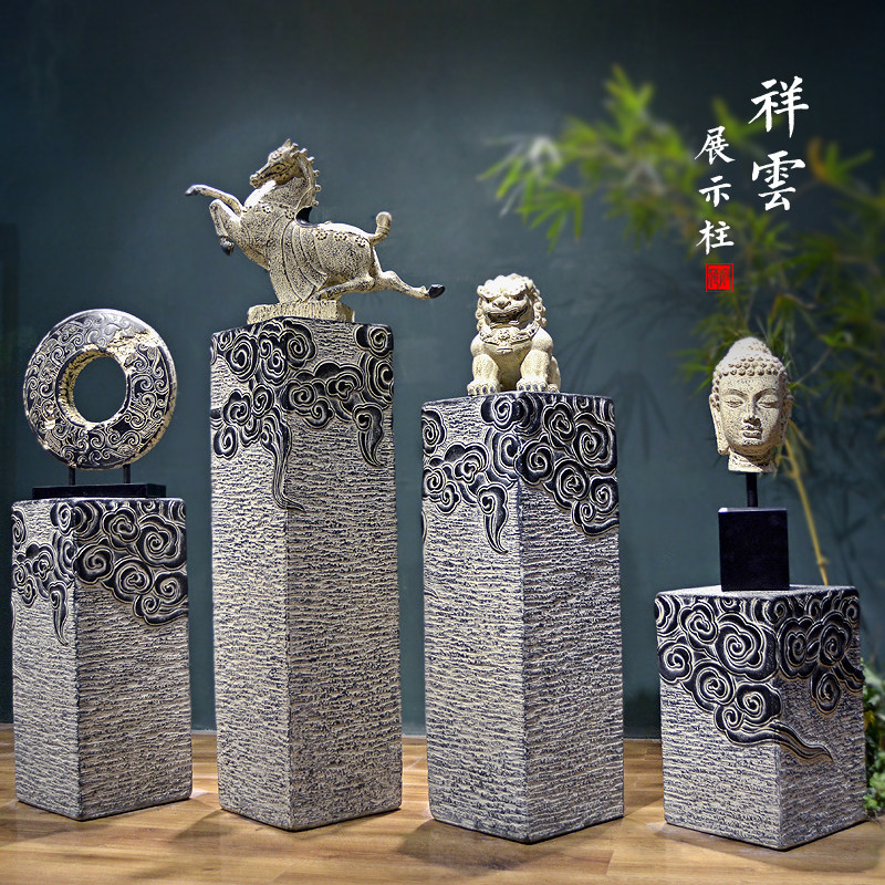 中式禅意落地仿古仿石柱客厅玄关家居展示柱摆件底U座祥云柱装饰