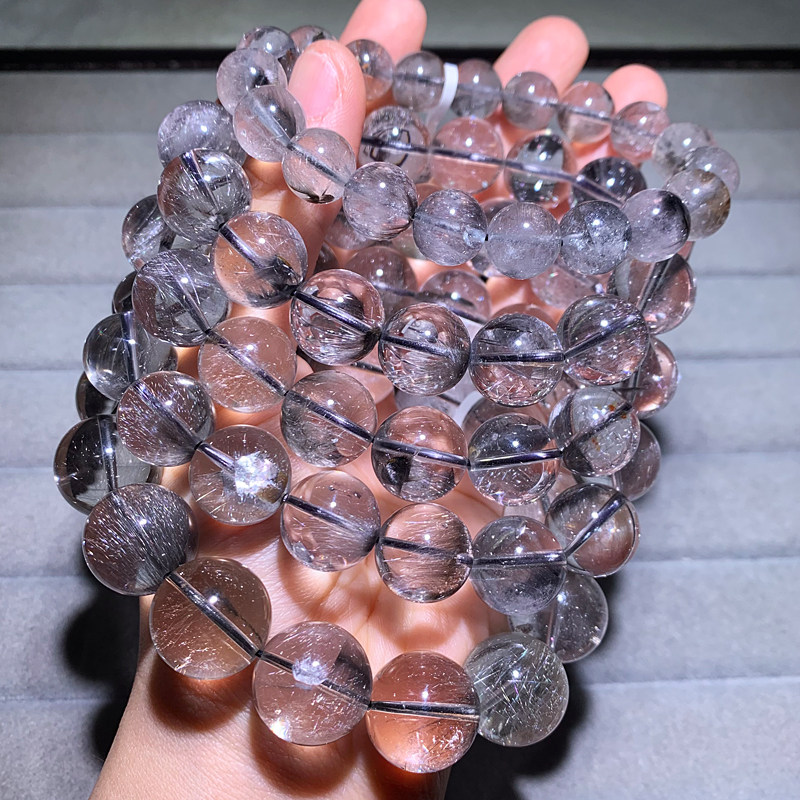 天然黑银钛晶手串猫眼单圈水晶共生幽灵发晶手链礼物一物一图饰品