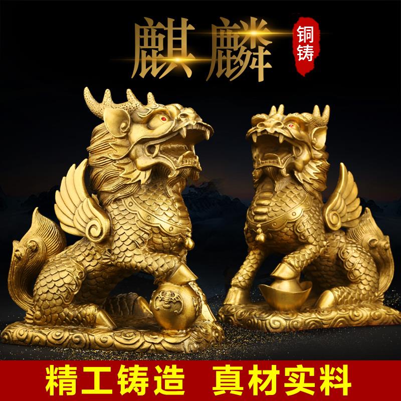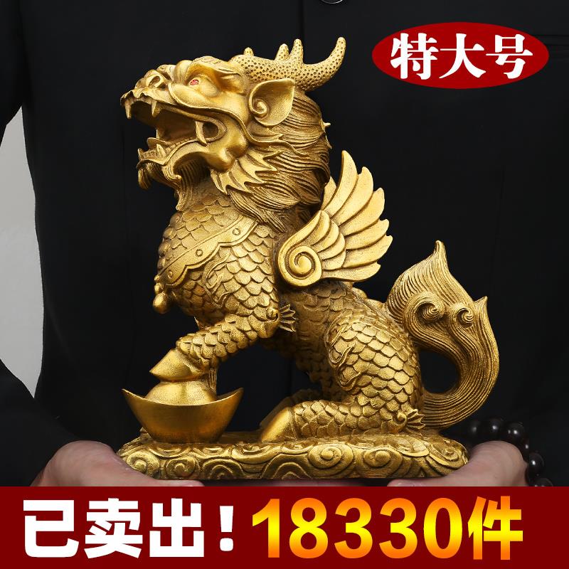 吉善缘 全铜麒麟摆件 大号铜麒麟家居招财客厅办公室桌装饰品2964