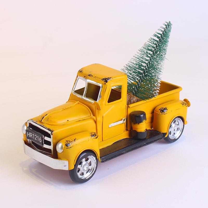 直销新款跨境创意新款复古黄色小卡车放花家居室内玄关铁艺工艺品