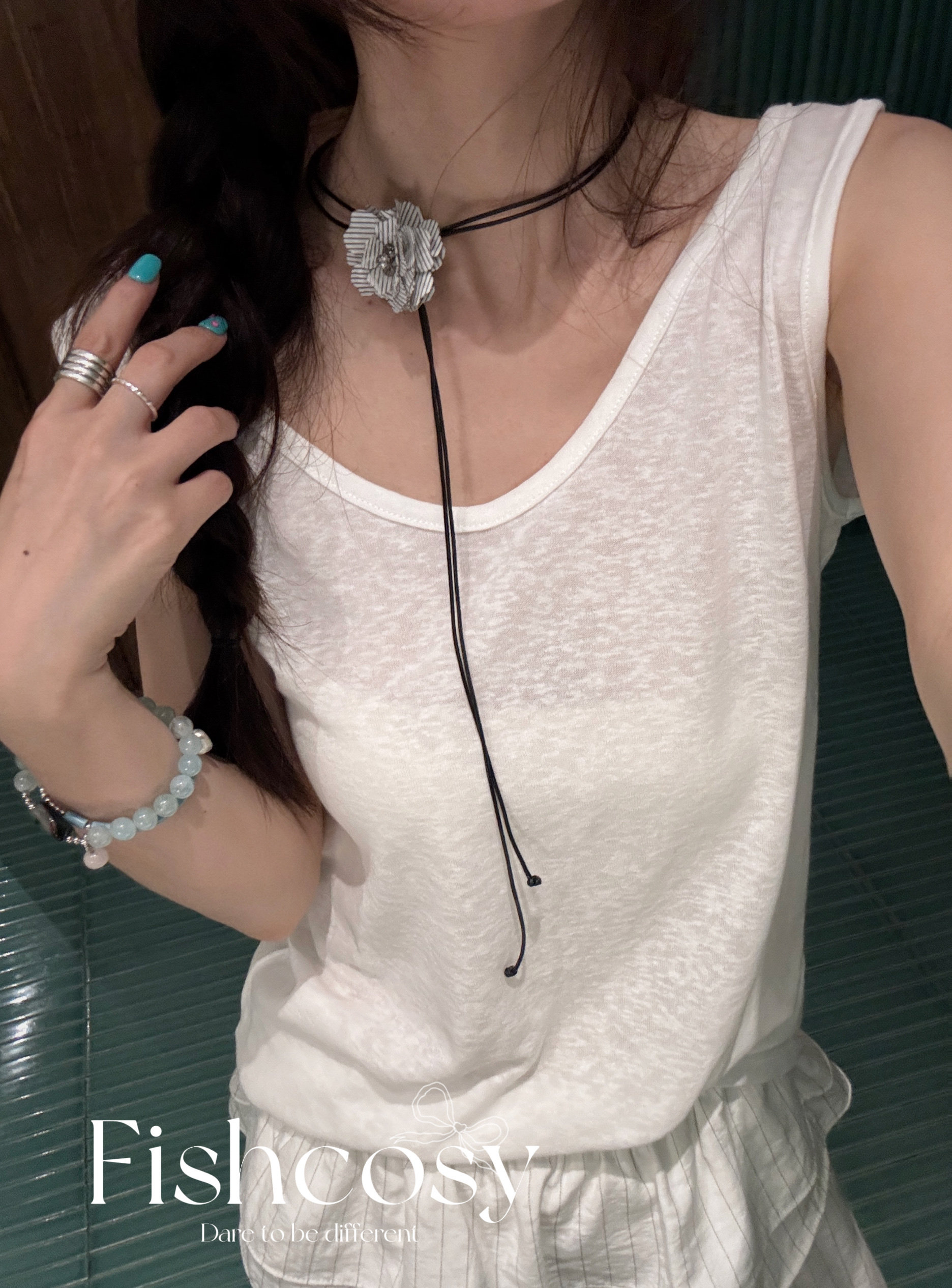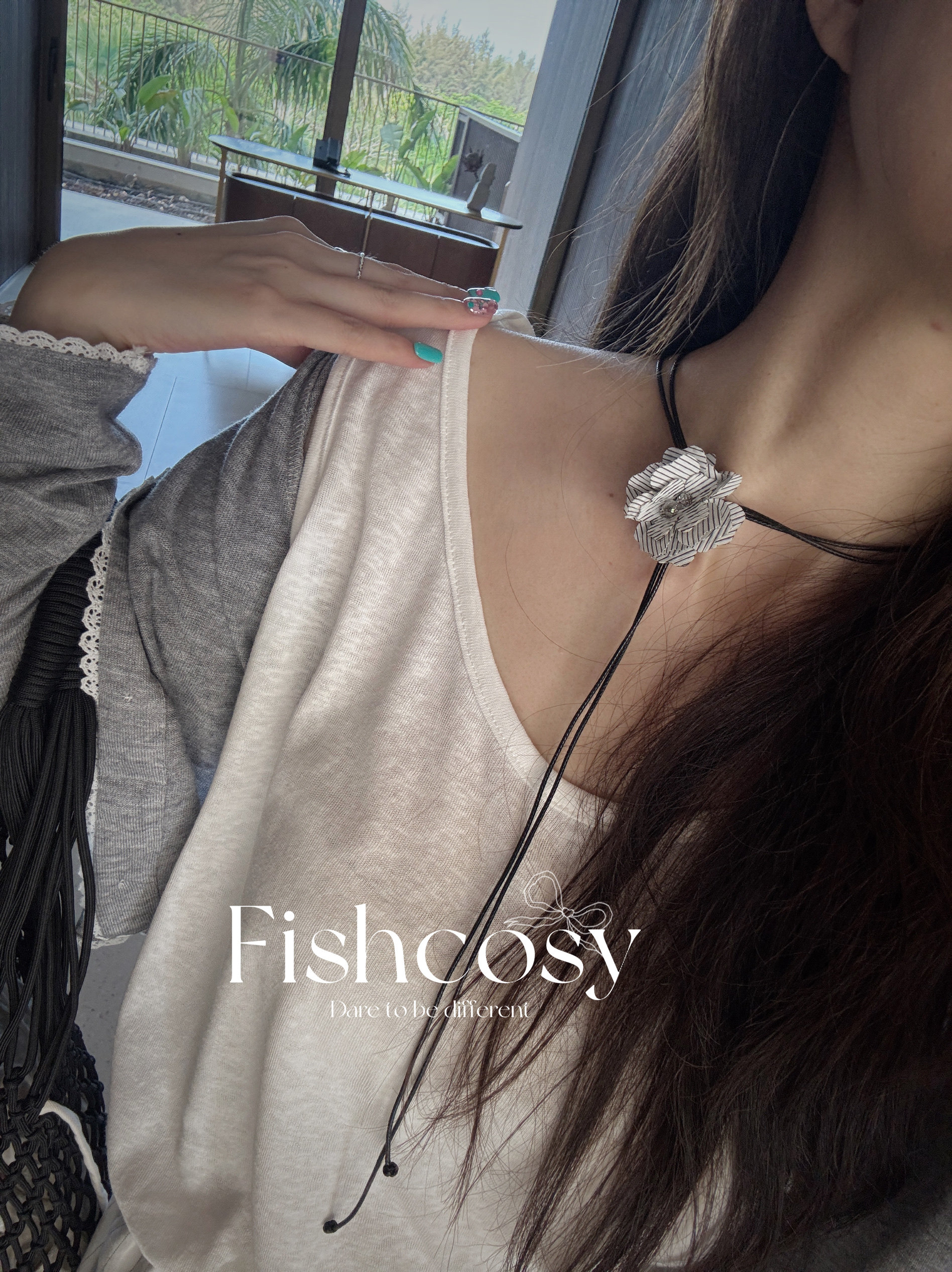 夏日清爽感!独家 韩国设计师手工制立体小花朵 抽拉皮绳项链