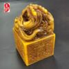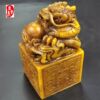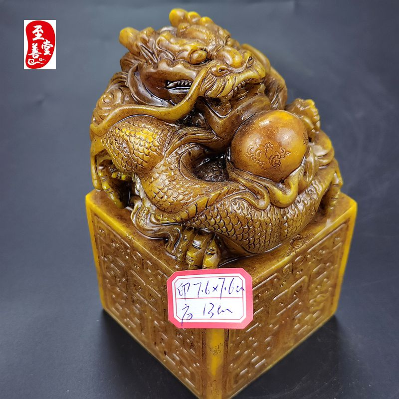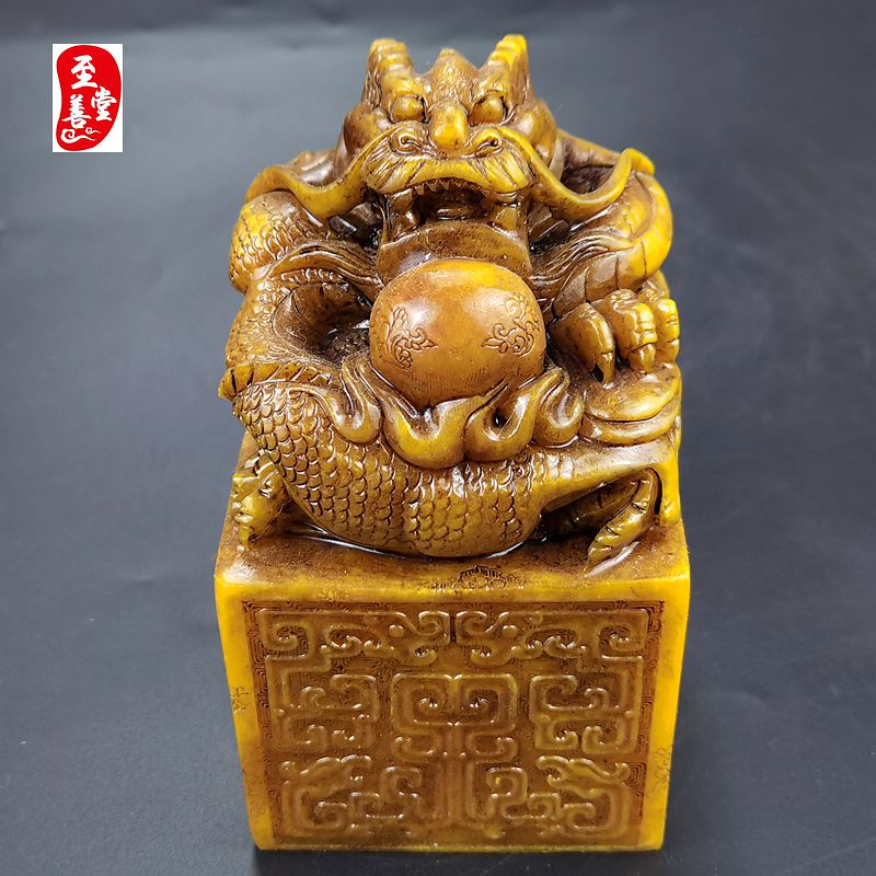 古玩仿寿山石雕老田黄色刻花盘龙玉玺印章摆件客厅装饰品
