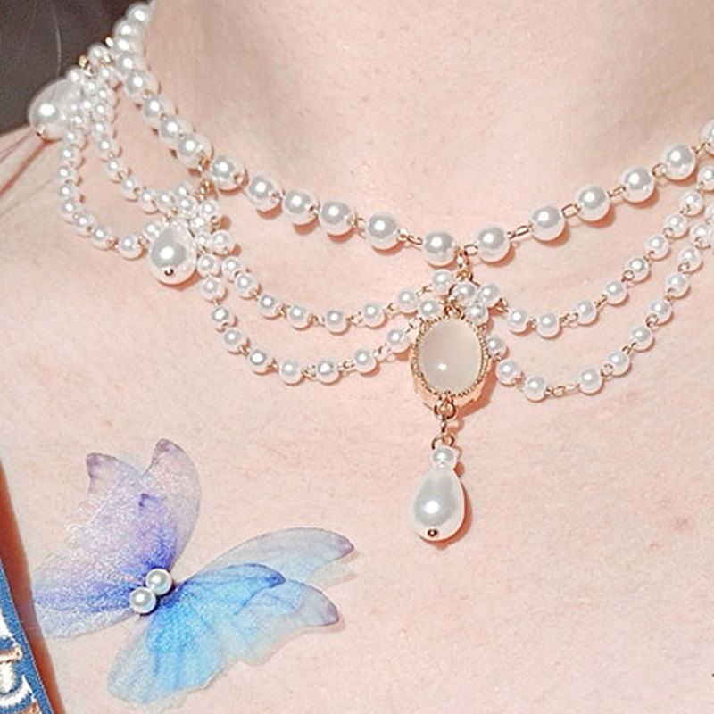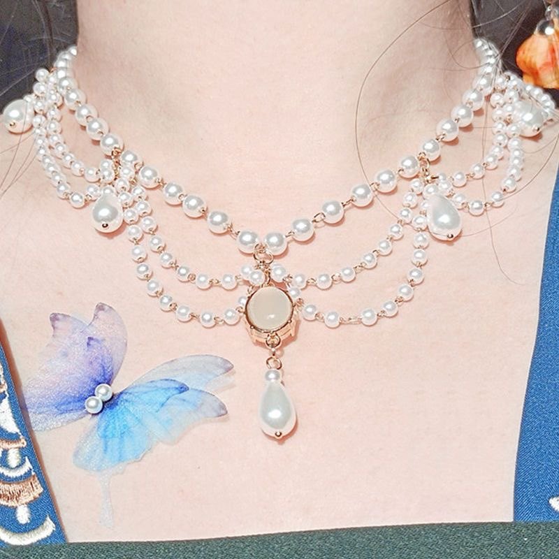 多层项链软璎珞古风汉服配饰仿珍珠洛丽塔复古锁骨链项圈仙气百搭