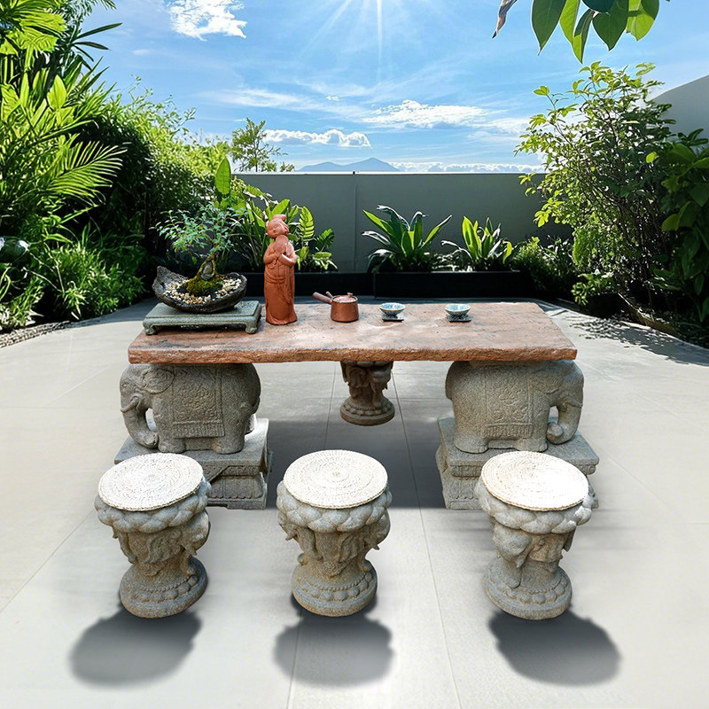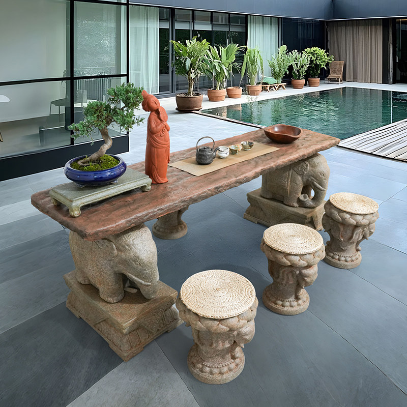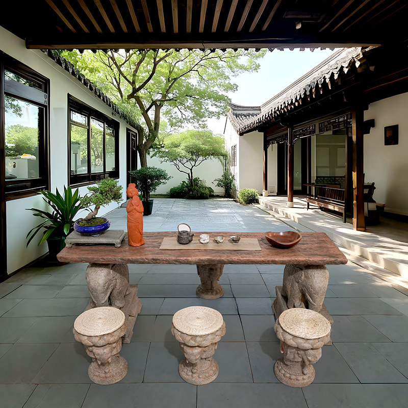 水磨坊中式吉象茶桌椅组合民宿茶几创意功夫茶台户外庭院休闲桌椅