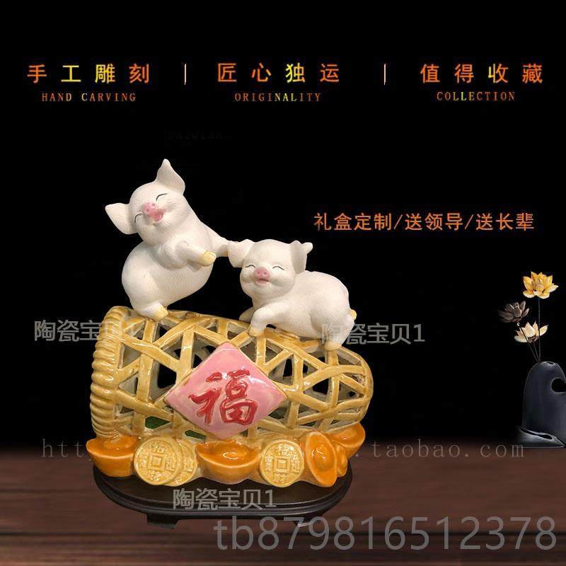 高档石湾公仔陶肖猪摆件家居客办公室瓷茶艺师室乔厅迁商务日常送