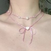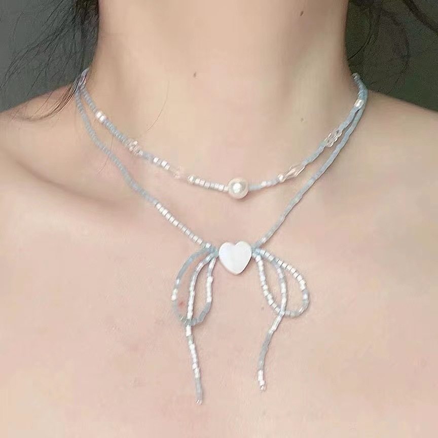 紫色氛围感小众设计串珠蝴蝶结爱心项链女百搭韩版可爱活泼锁骨