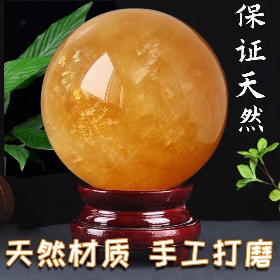 天然黄水晶真水晶球摆件原石招财客厅办公室高档饰品送桌面黄色