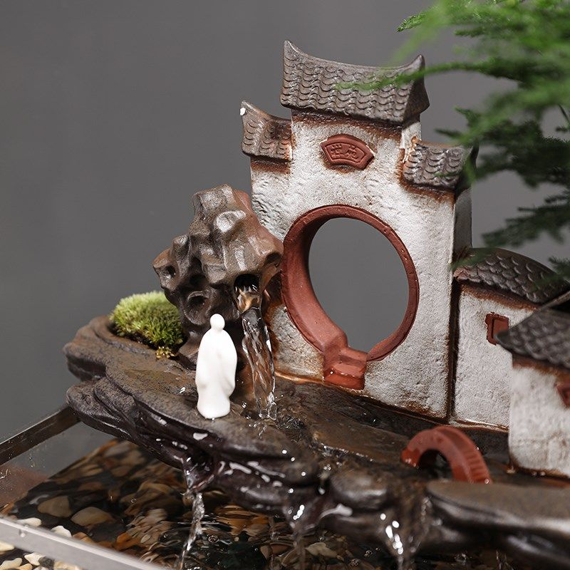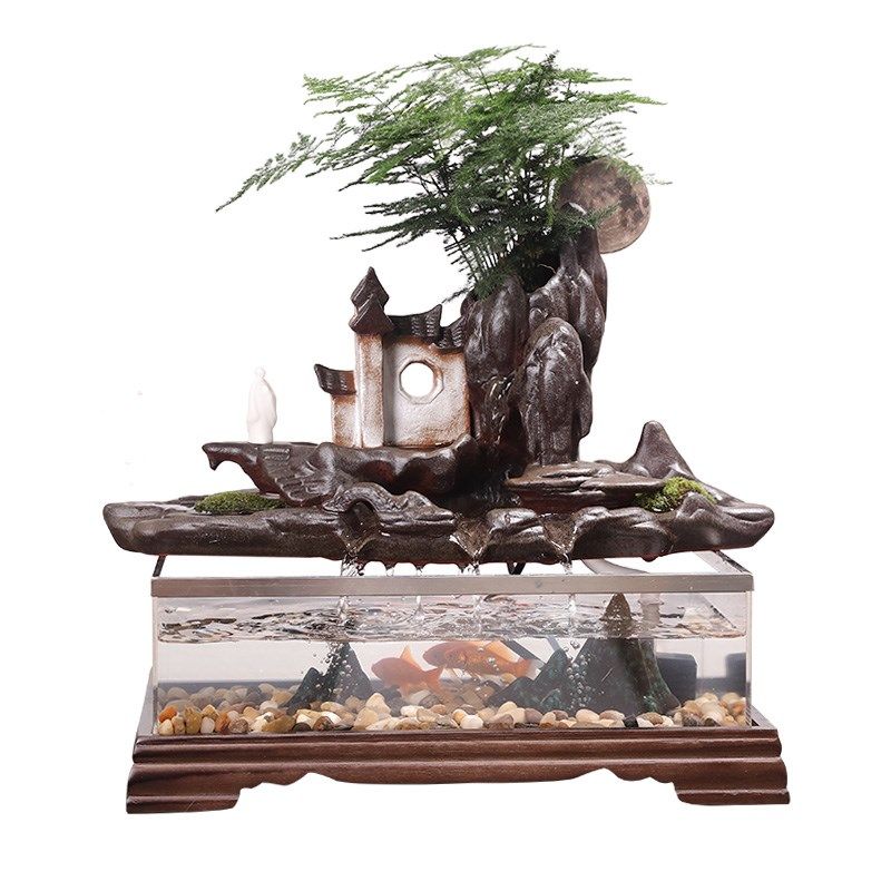 桌面鱼缸客厅小型创意高山流水喷泉摆件生财开业乔迁新居礼品高档