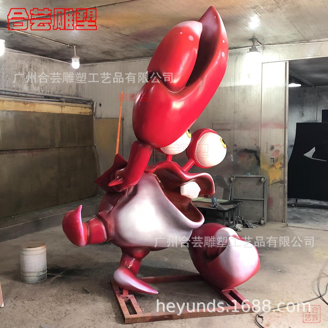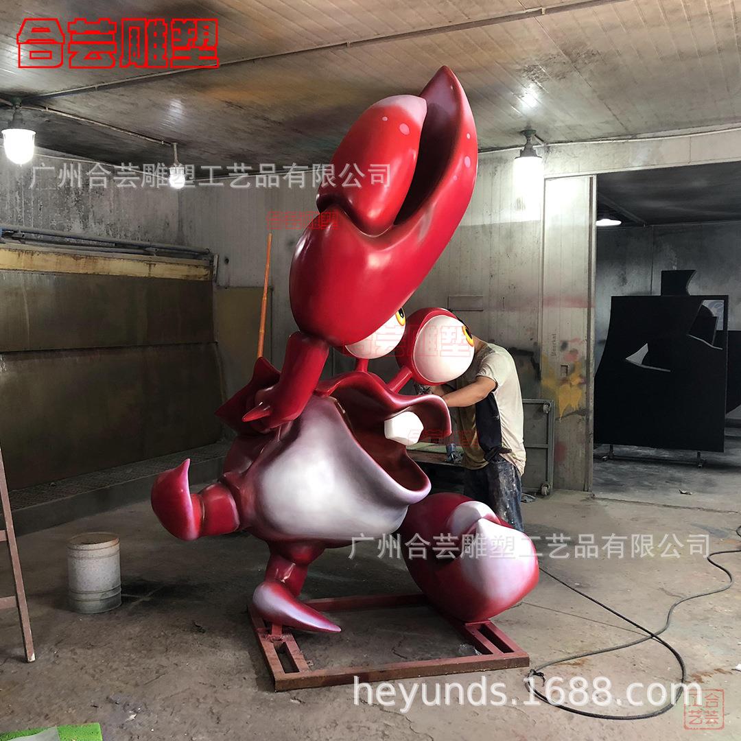 玻璃钢大型螃蟹龙虾火锅店造型雕塑仿真卡通摆件游乐场景区展示