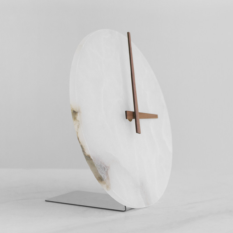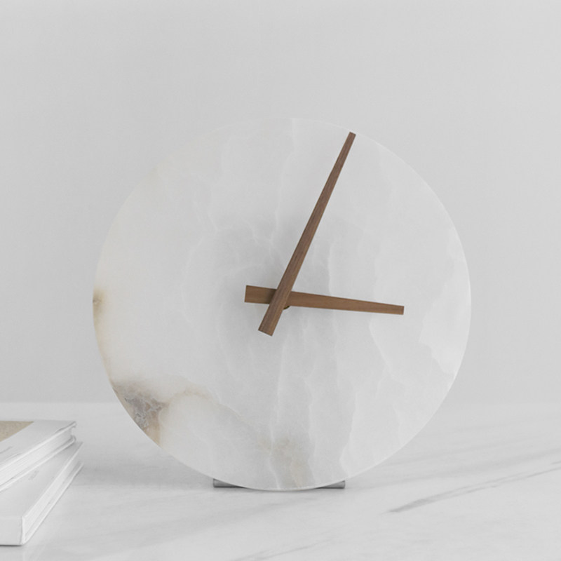 现代轻奢高档大理石时钟摆件样板间客厅卧室玄关白色云石台钟座钟