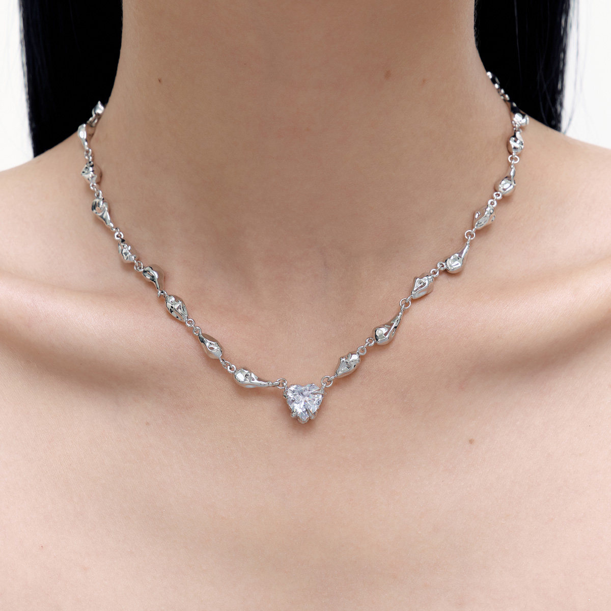 BOONEE项链轻奢小众高级感熔岩宝石爱心颈链时尚百搭锁骨链女礼物