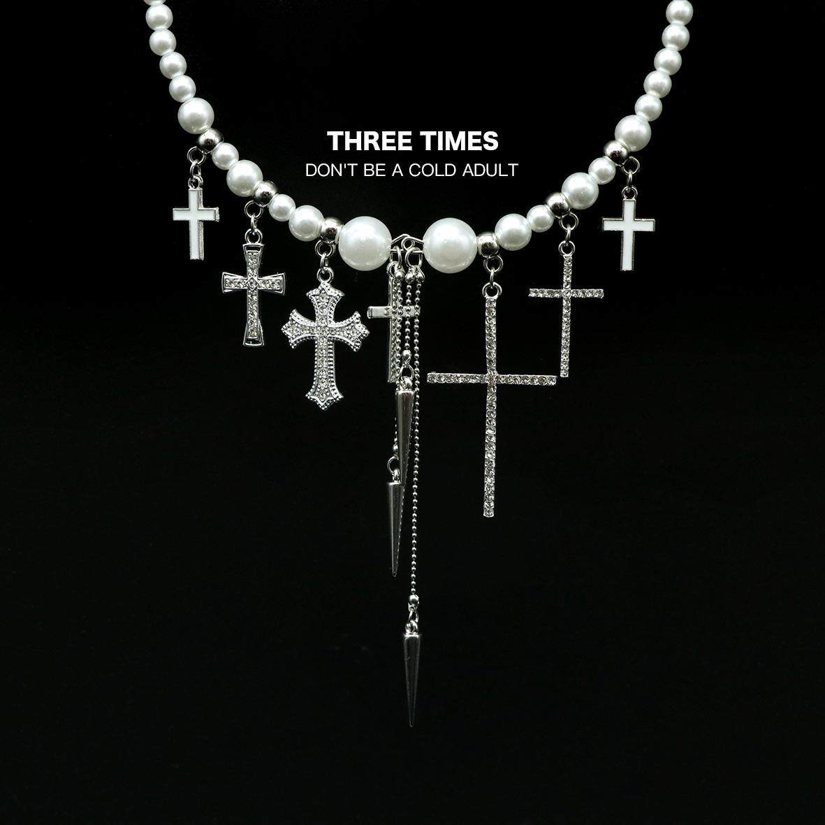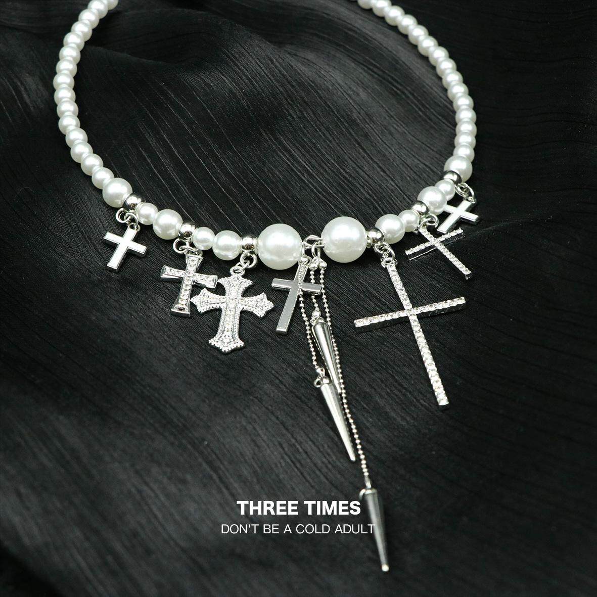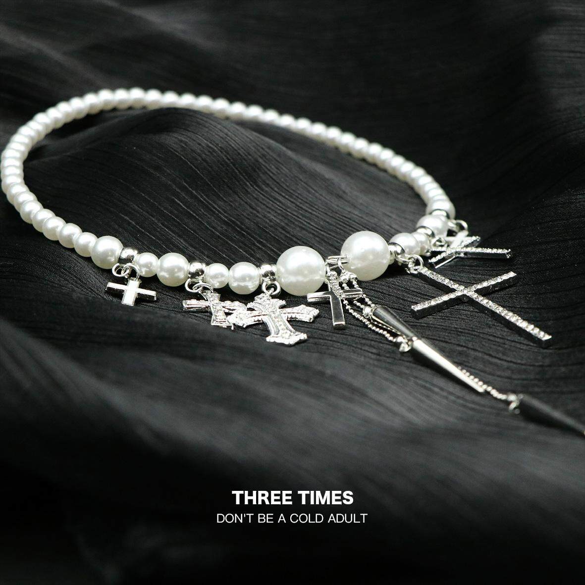 【THREE TIMES】流苏十字架吊坠开口项圈时尚潮流高级感饰品锁骨