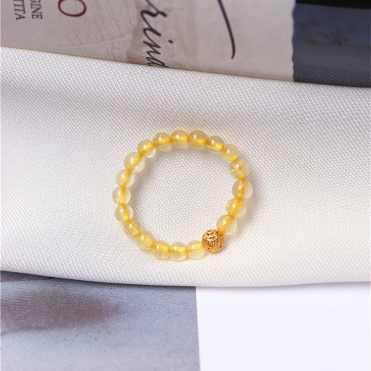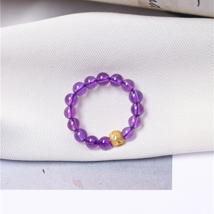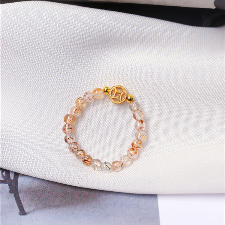 天然水晶紫水晶草莓晶金发晶黑金超七圆珠款戒指指环弹力绳款女款