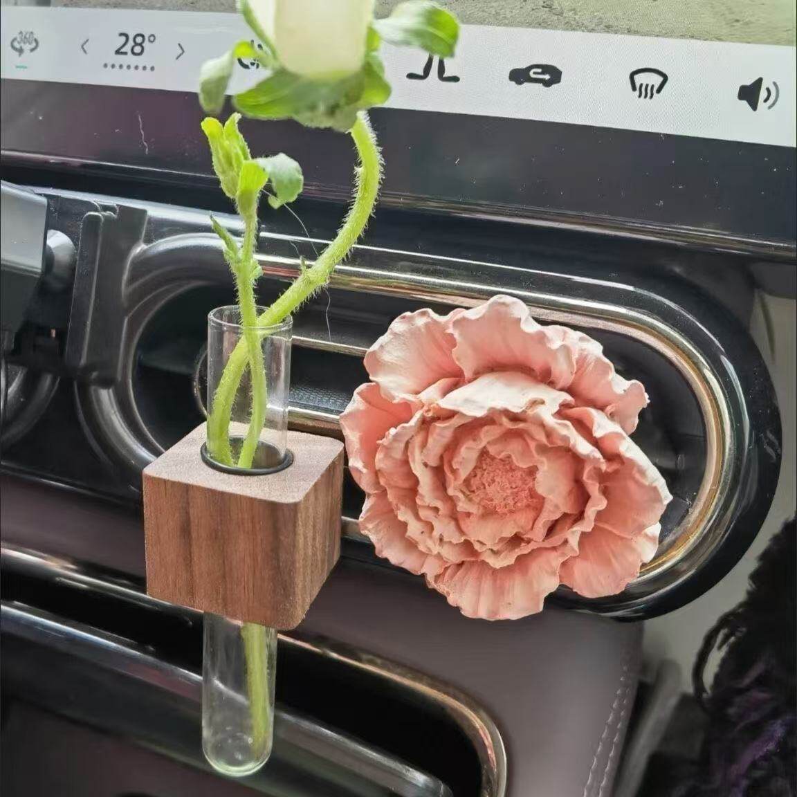 车内花盆车载创意摆件鲜花小花盆高级汽车出风口装饰车载小花瓶