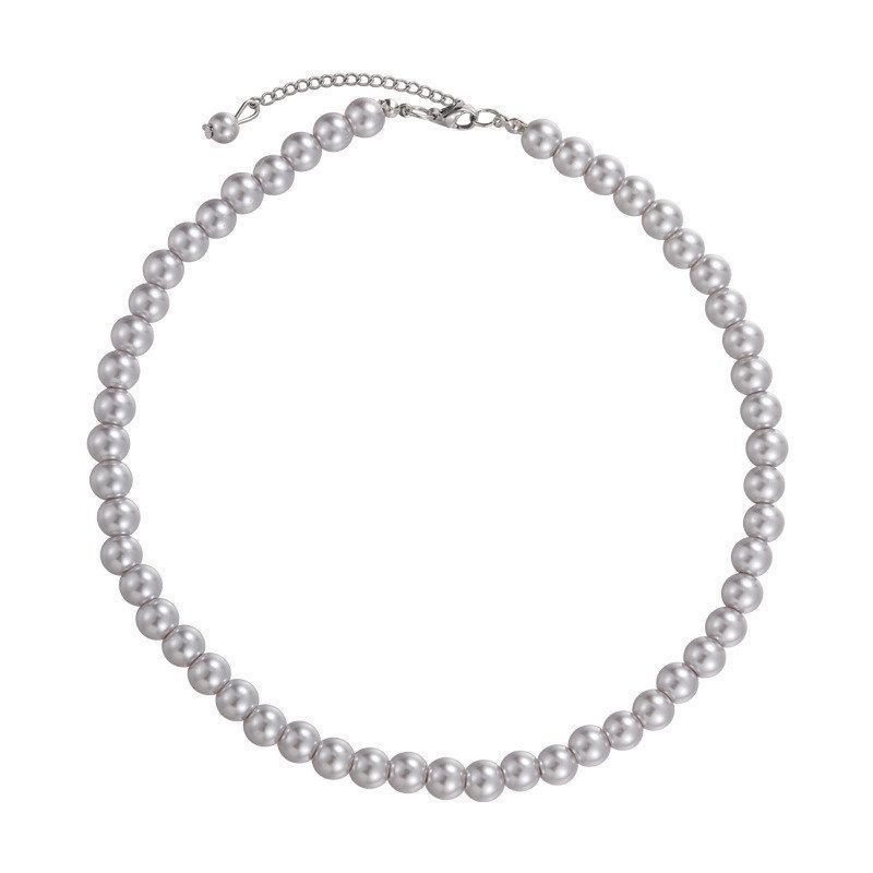 复古灰色珍珠项链倪妮同轻奢小众毛衣锁骨链简约灰珍珠颈链配饰潮