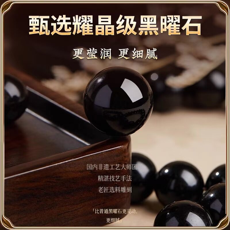 天然乌金黑曜石手链天然黑耀石黑色珠子串珠散珠单圈手串男女款